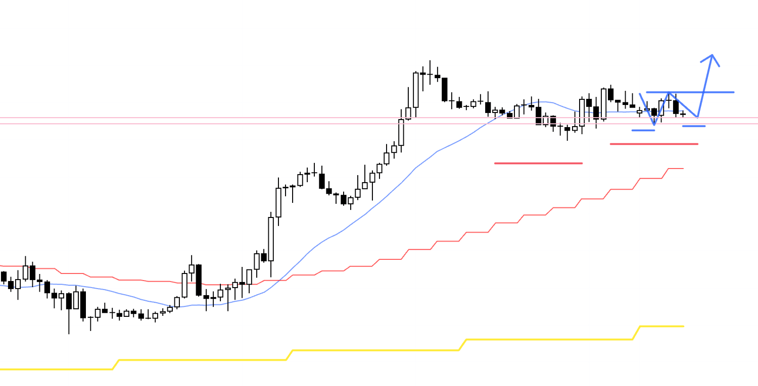 A 4h higher-low structure has been forming here, so I set a buy order.
