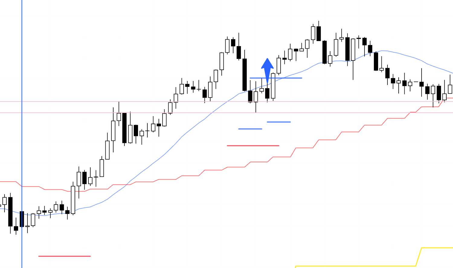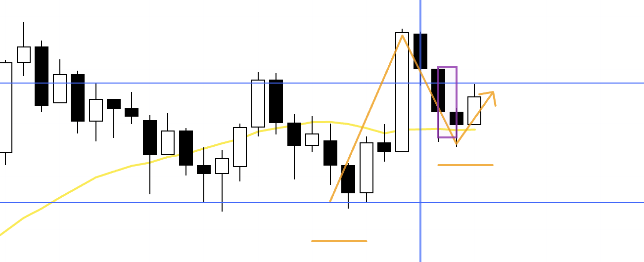 The boxed area on the chart is a pullback-buying zone, so under normal circumstances it’s a level where I’d want to go long, but in Japan it was 3:00 a.m. and I was asleep—so by the time I woke up and checked the chart, price had already rallied.