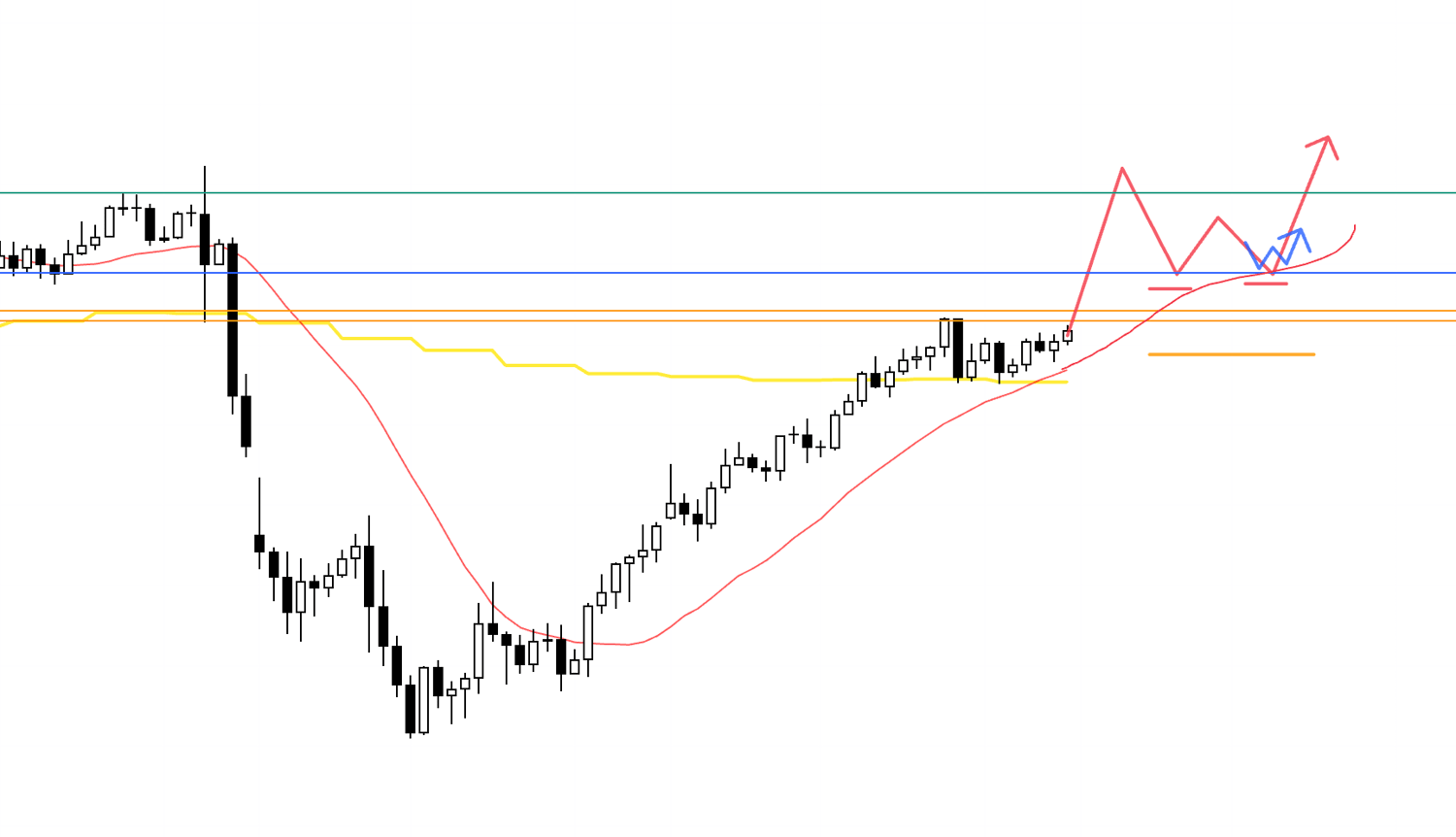 However, just above the orange line sits the blue line, which is also likely to act as resistance, so caution is warranted.
