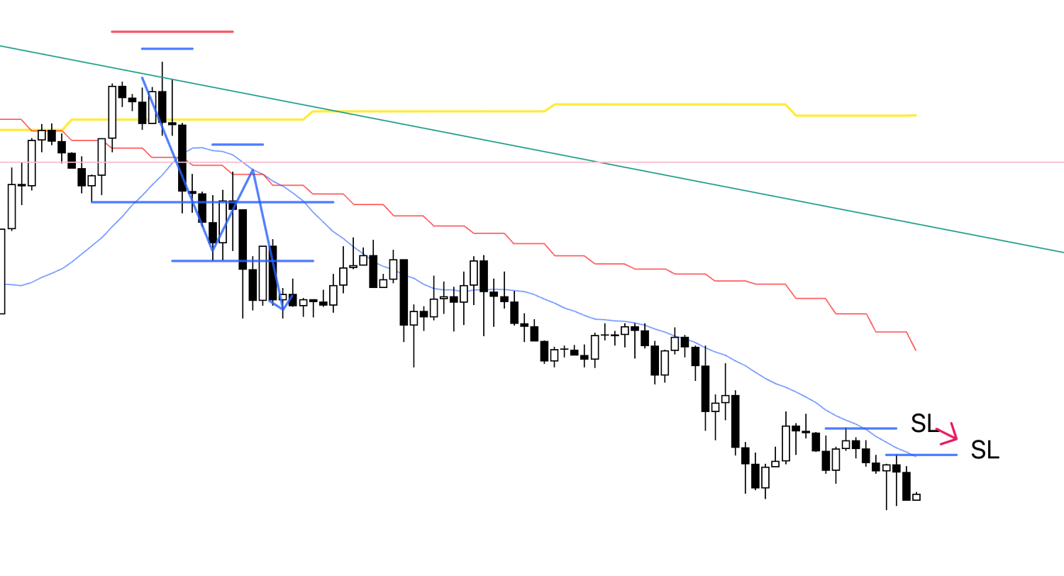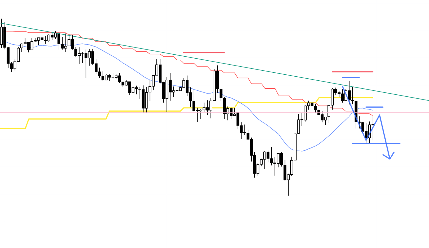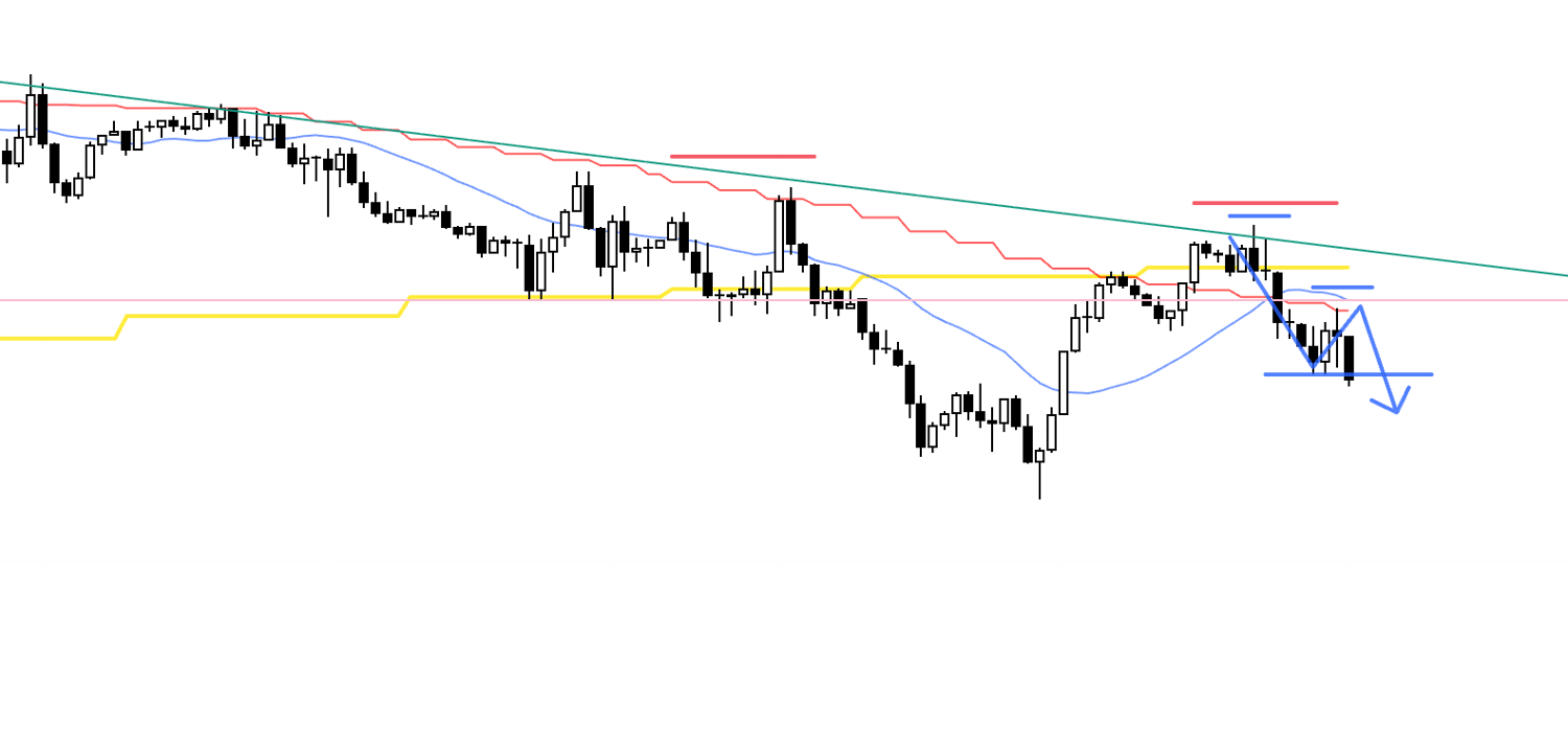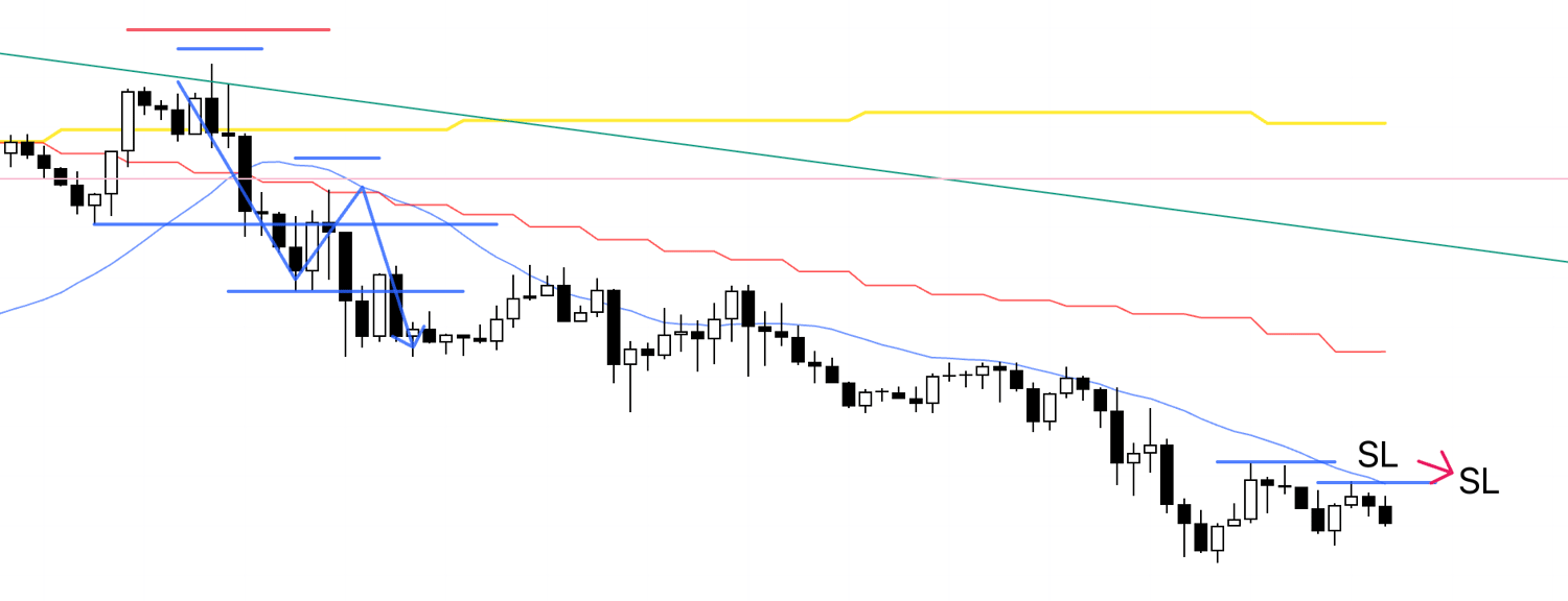 On the 4h, it is forming a lower-high point while being capped by the green trendline, so I’ve placed a sell stop order.
