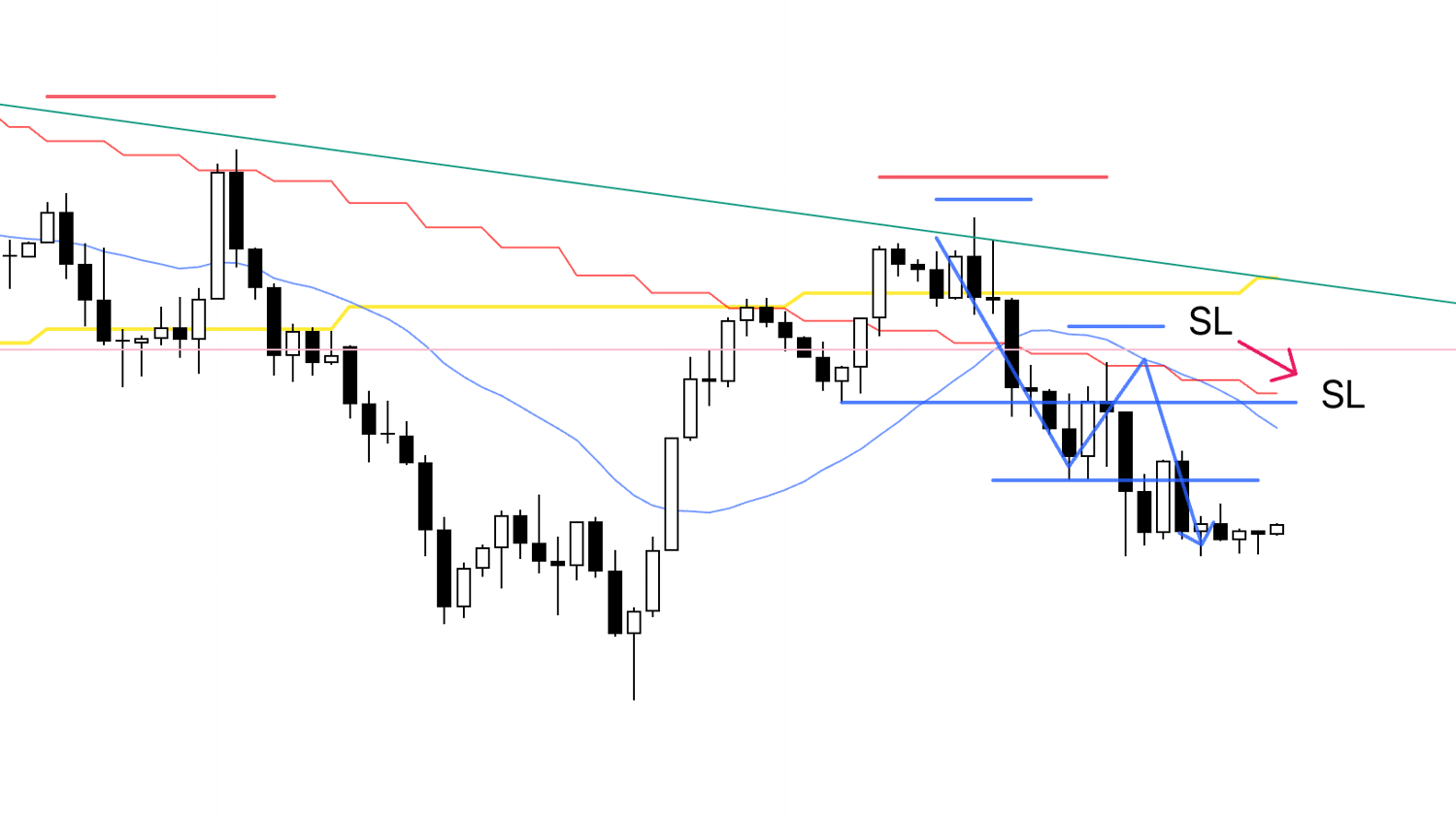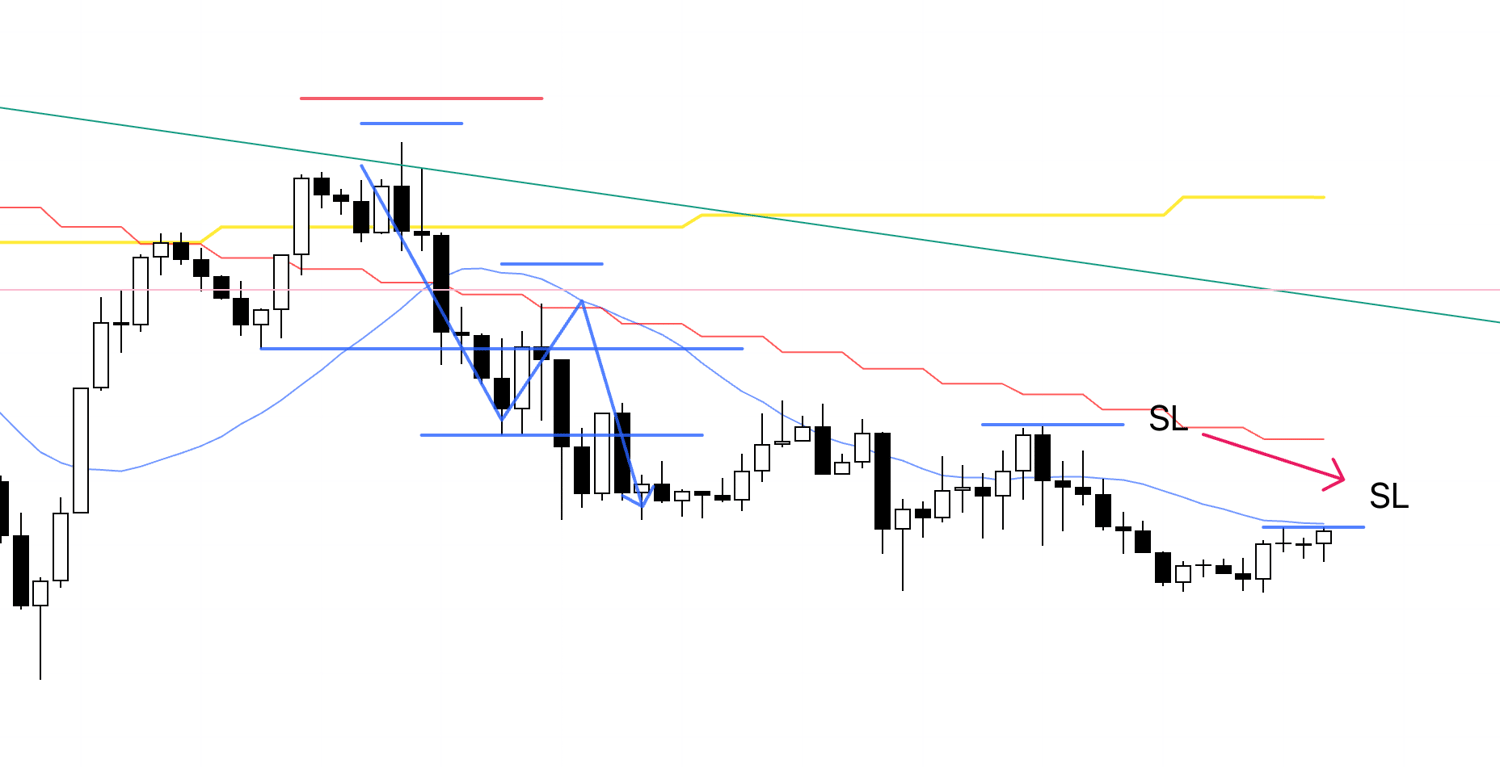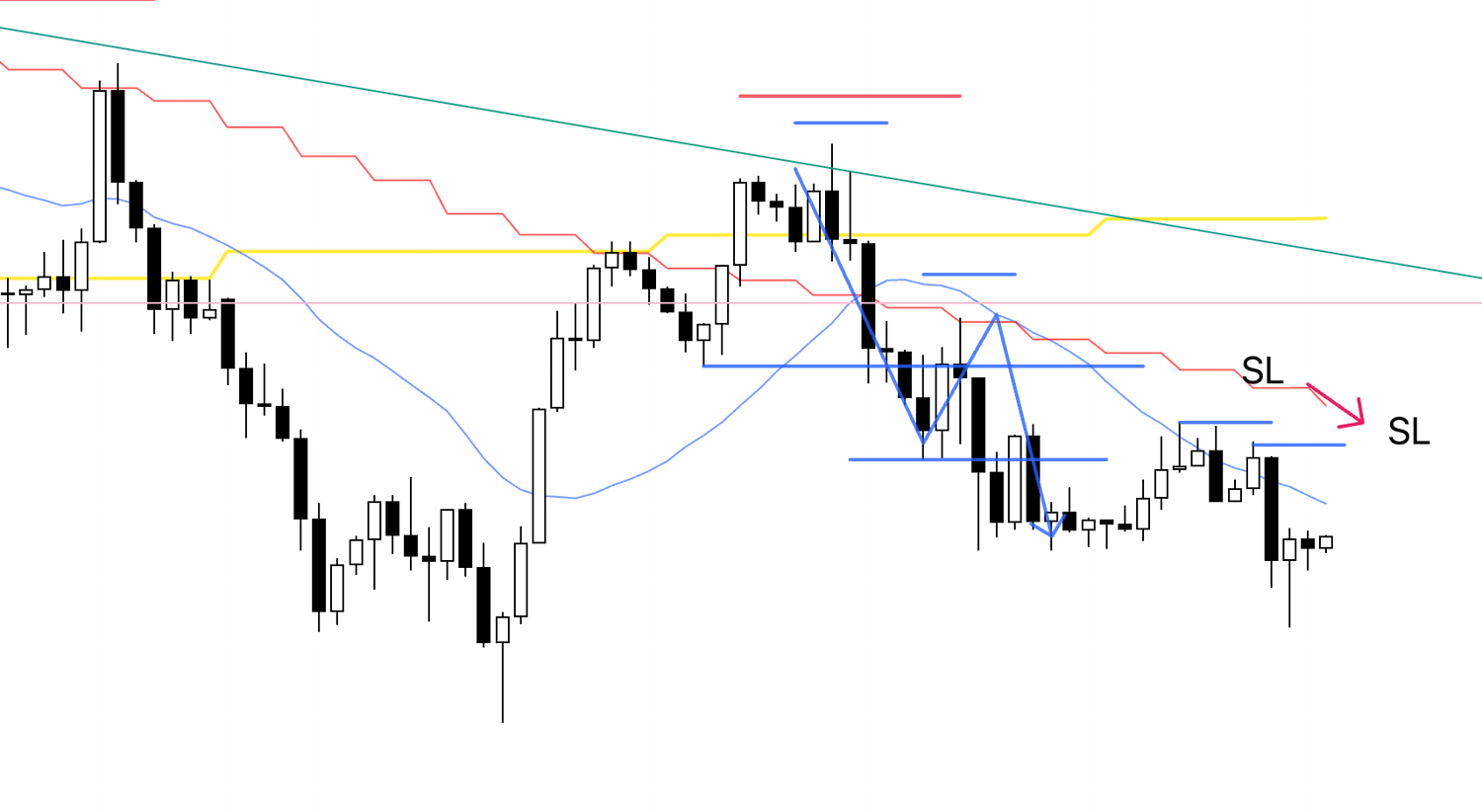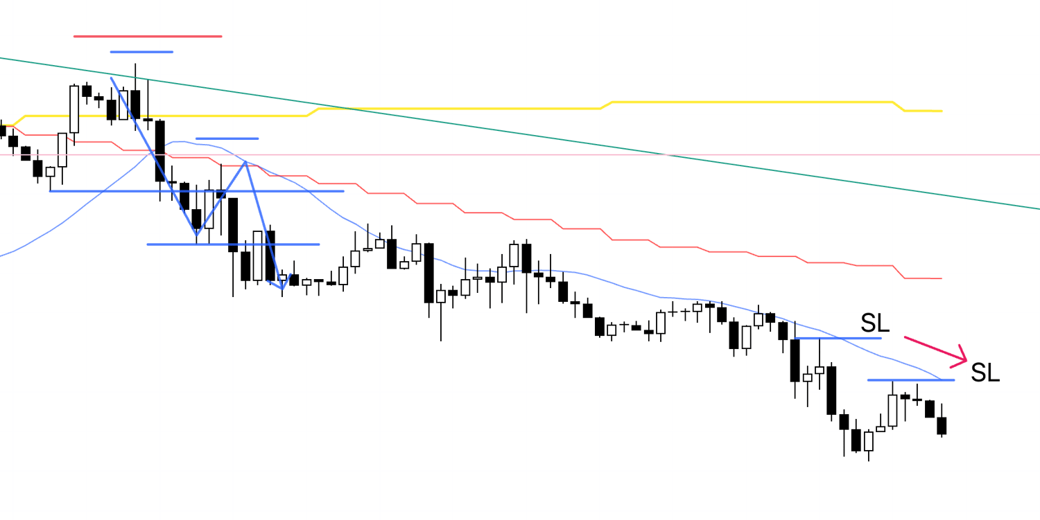 On the 4h, it is forming a lower-high point while being capped by the green trendline, so I’ve placed a sell stop order.