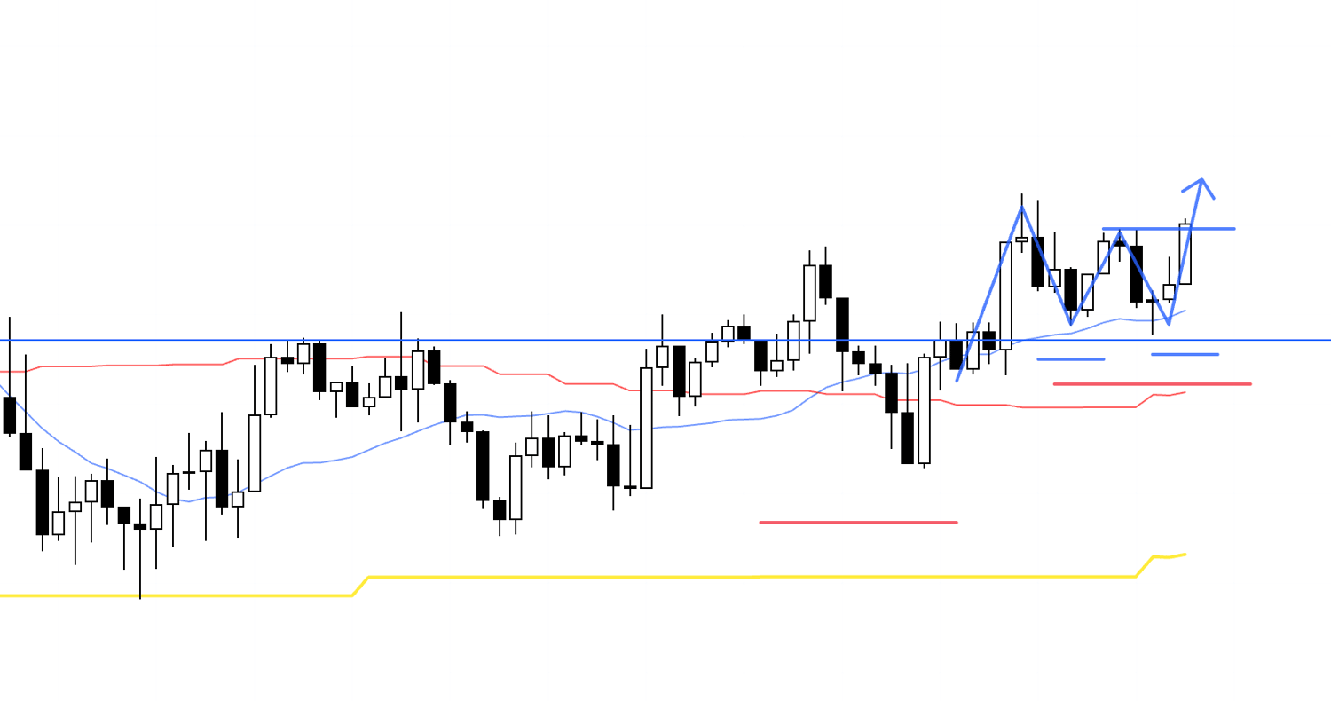 In Sunday’s scenario blog, I was looking at a buy-entry scenario as a daily pullback buy, targeting a point on this blue line where the 4h makes a higher low and the 1h starts an uptrend.