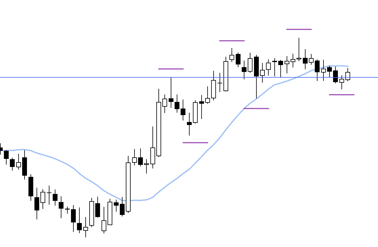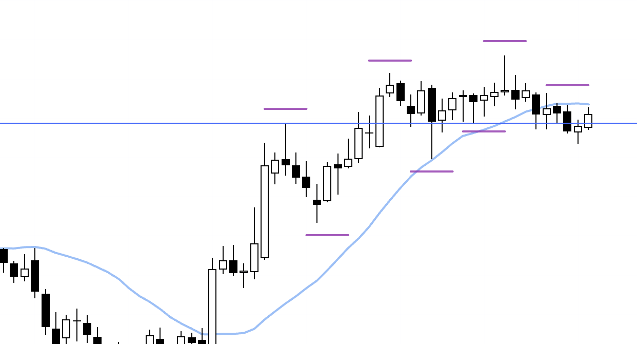 Conversely, if price starts to form lower highs as if capped by this blue line, I’ll look to follow a 4h downtrend as the daily chart builds out a pullback.