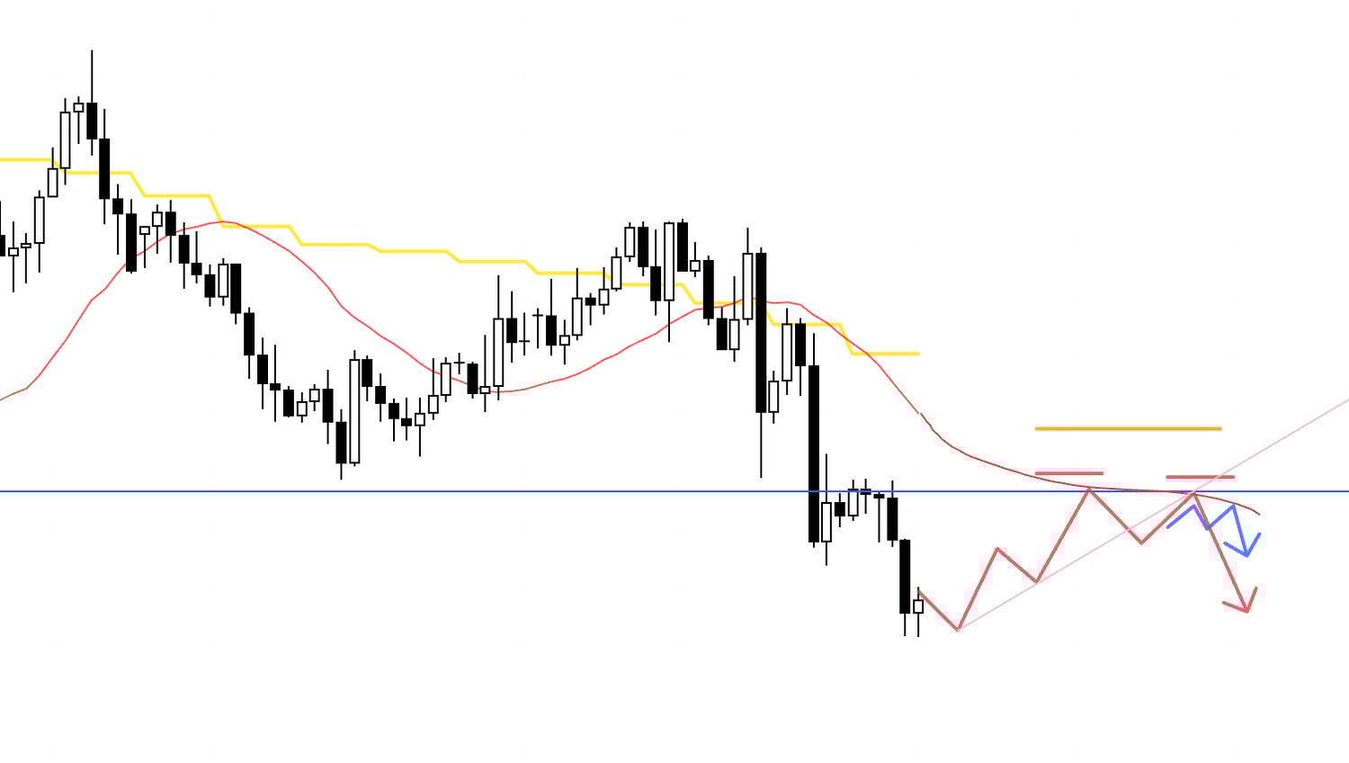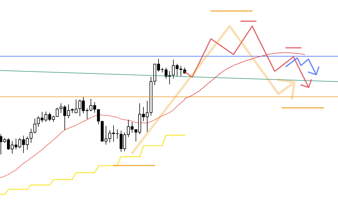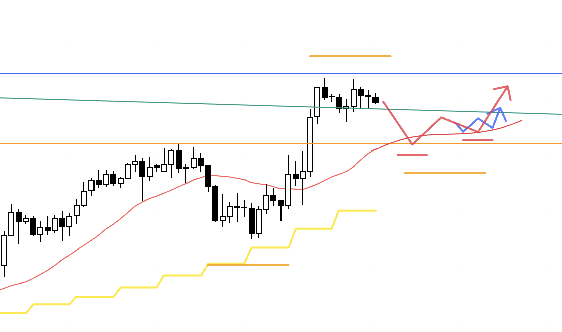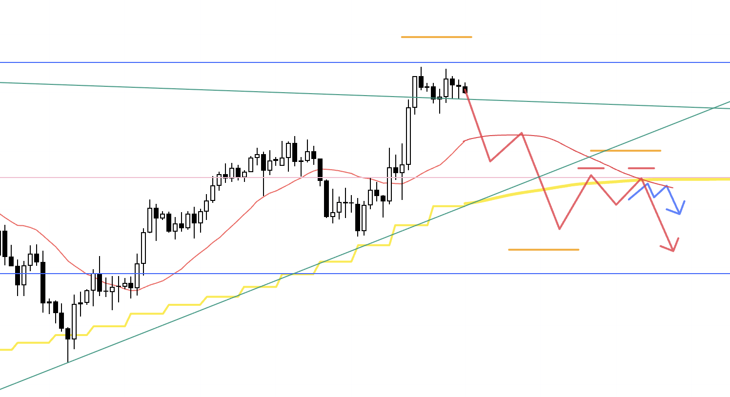 The task now is to watch price action around that blue line and prepare scenarios for both outcomes: either it becomes a new lower‑high pivot that turns the market down, or dip‑buyers step in to defend the broader uptrend.