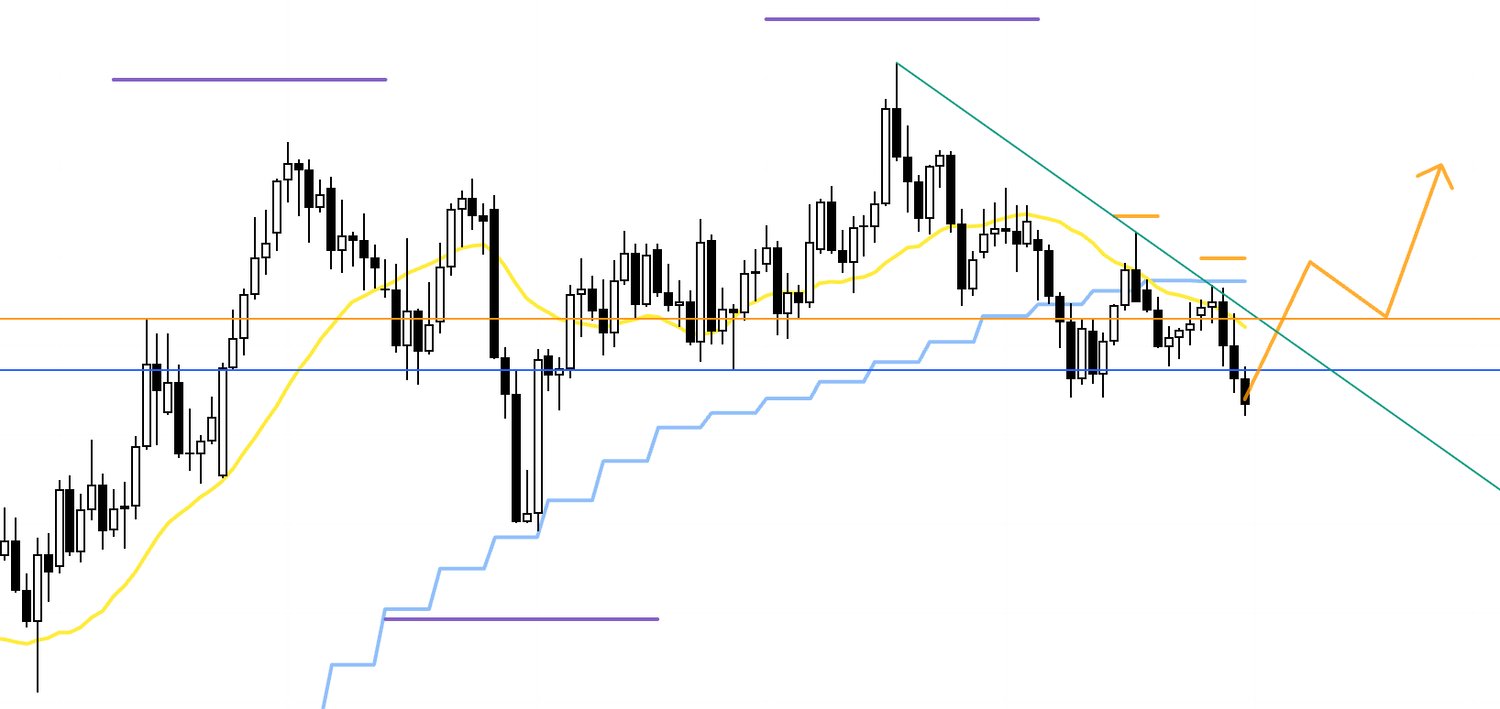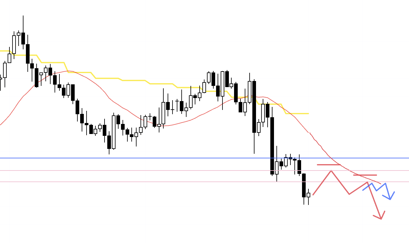However, if price reclaims the blue line and the daily rotates from a downtrend into an uptrend, I will look to ride that move as weekly‑chart dip‑buying.