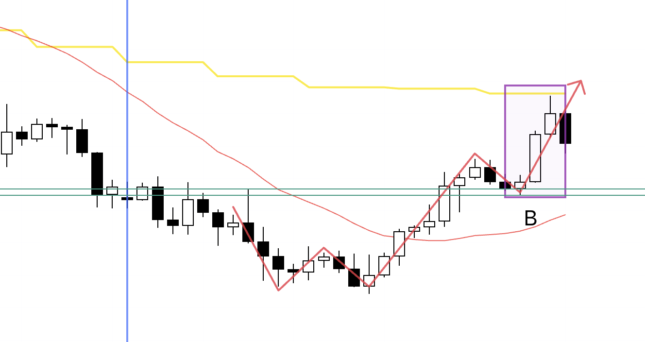 I did not trade point B, but it was a level I had defined in my scenario and was waiting for.