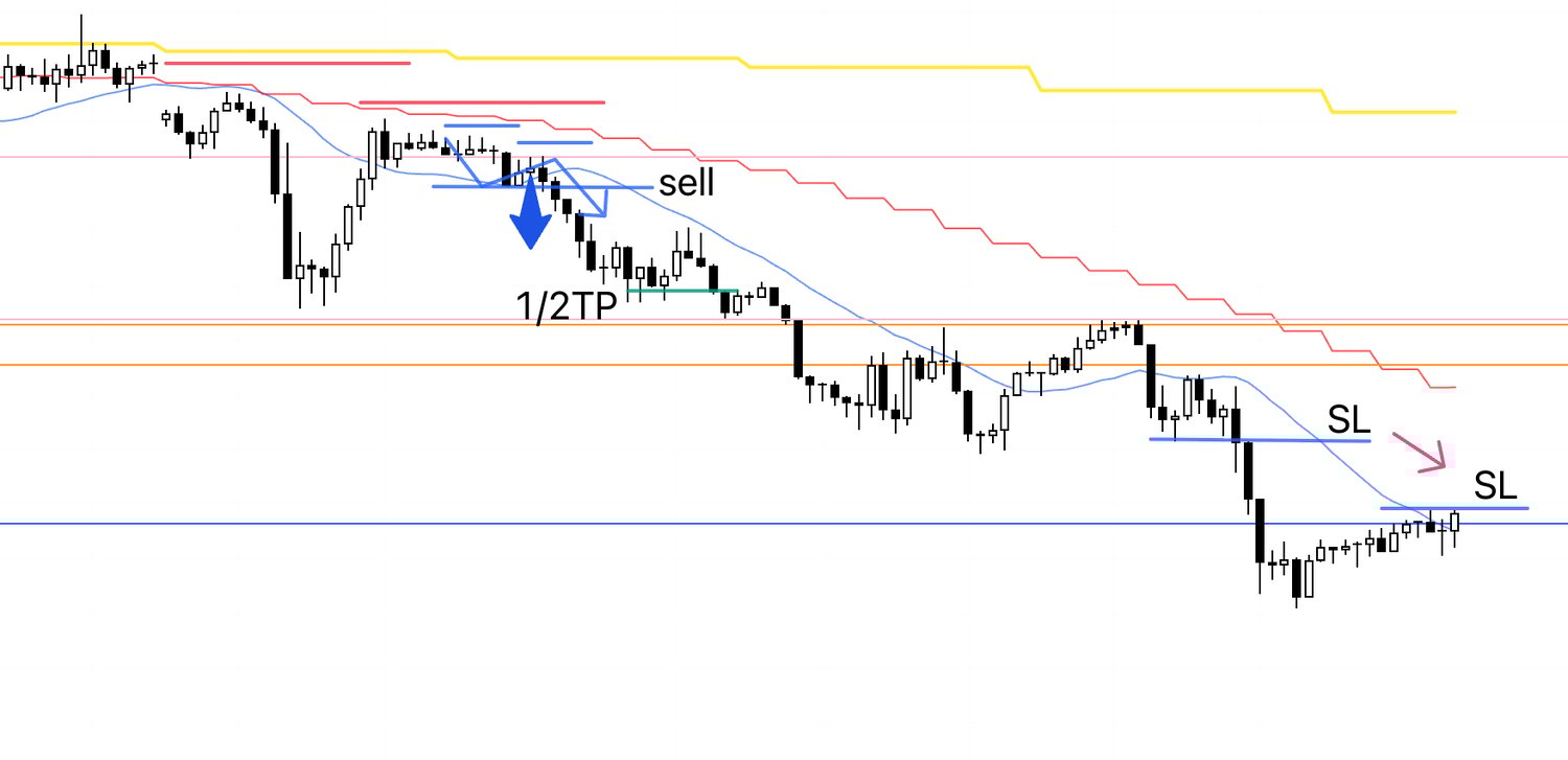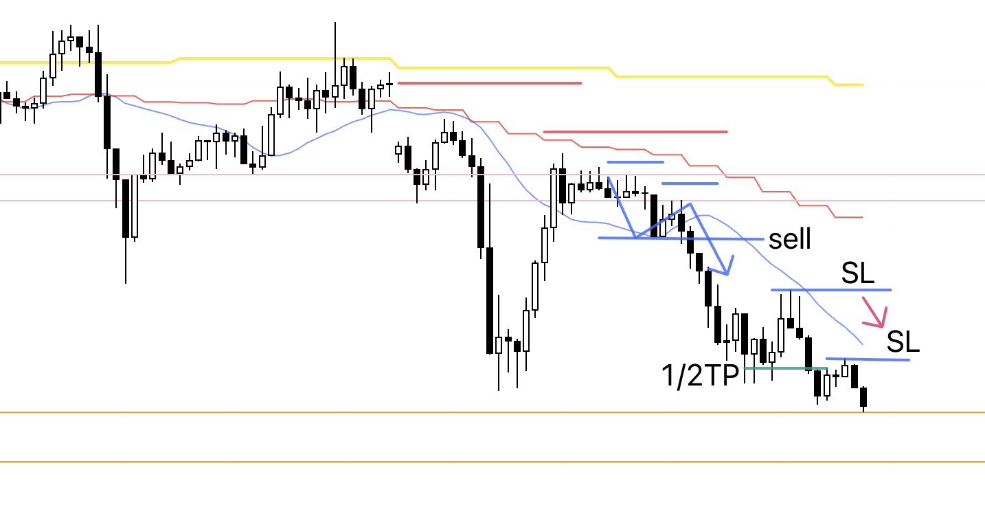 Fortunately, price fell without clipping the SL, printed another lower-high point, and I lowered the SL.