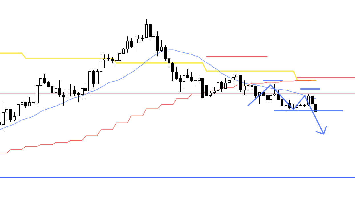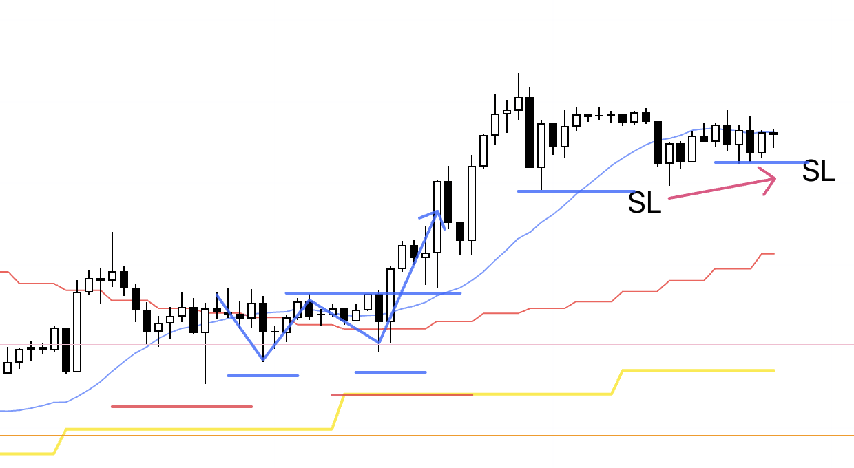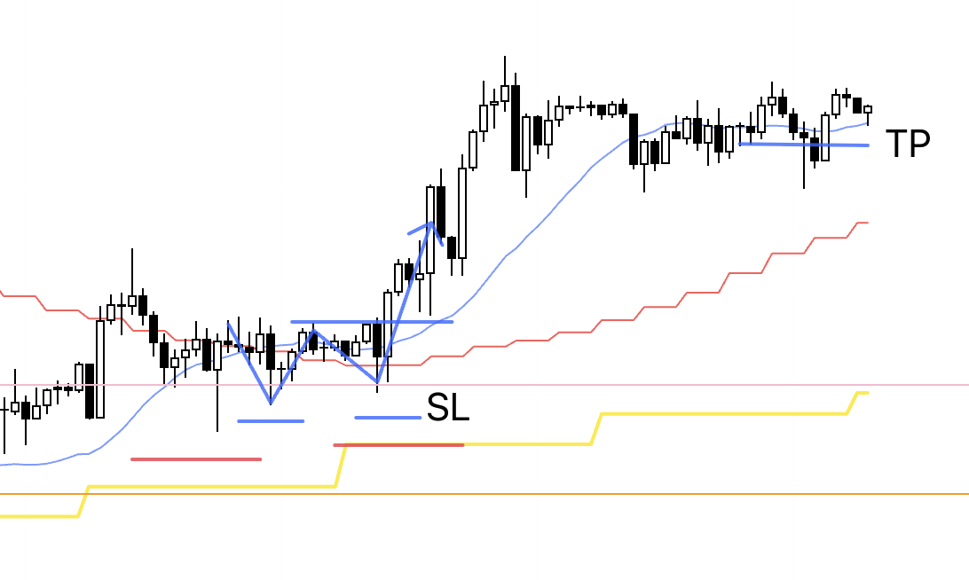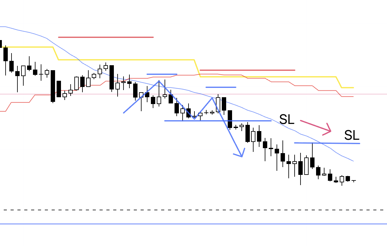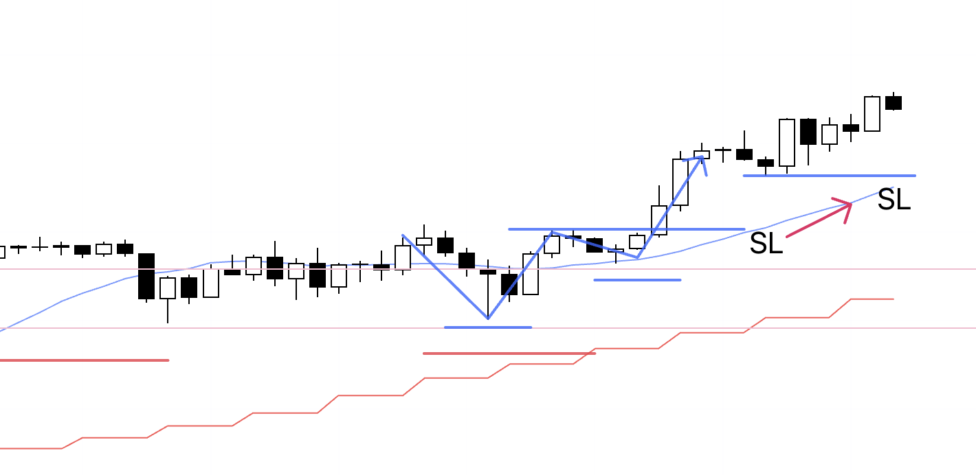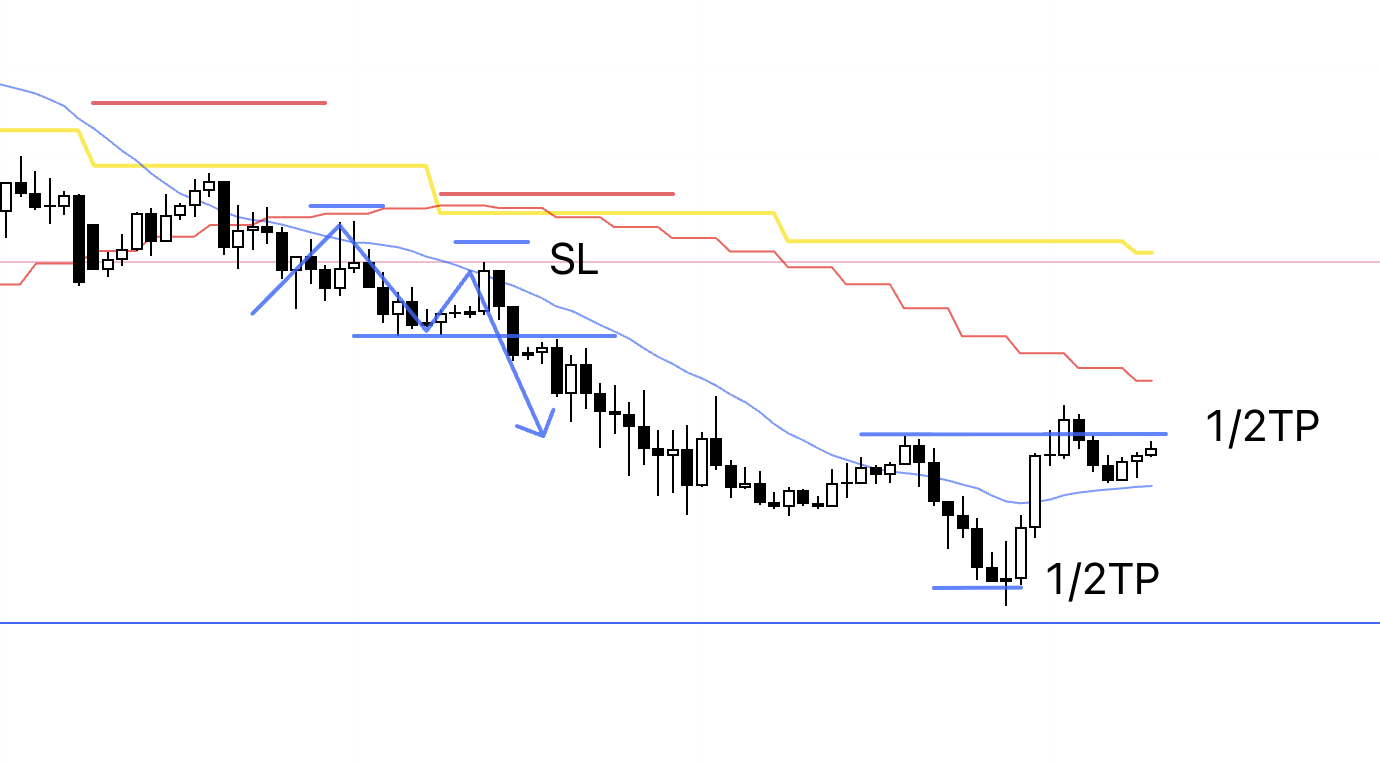 After that, price formed a higher‑low, but at that moment the 4h moving average (red) was still pressing from above, so I couldn’t take the trade.