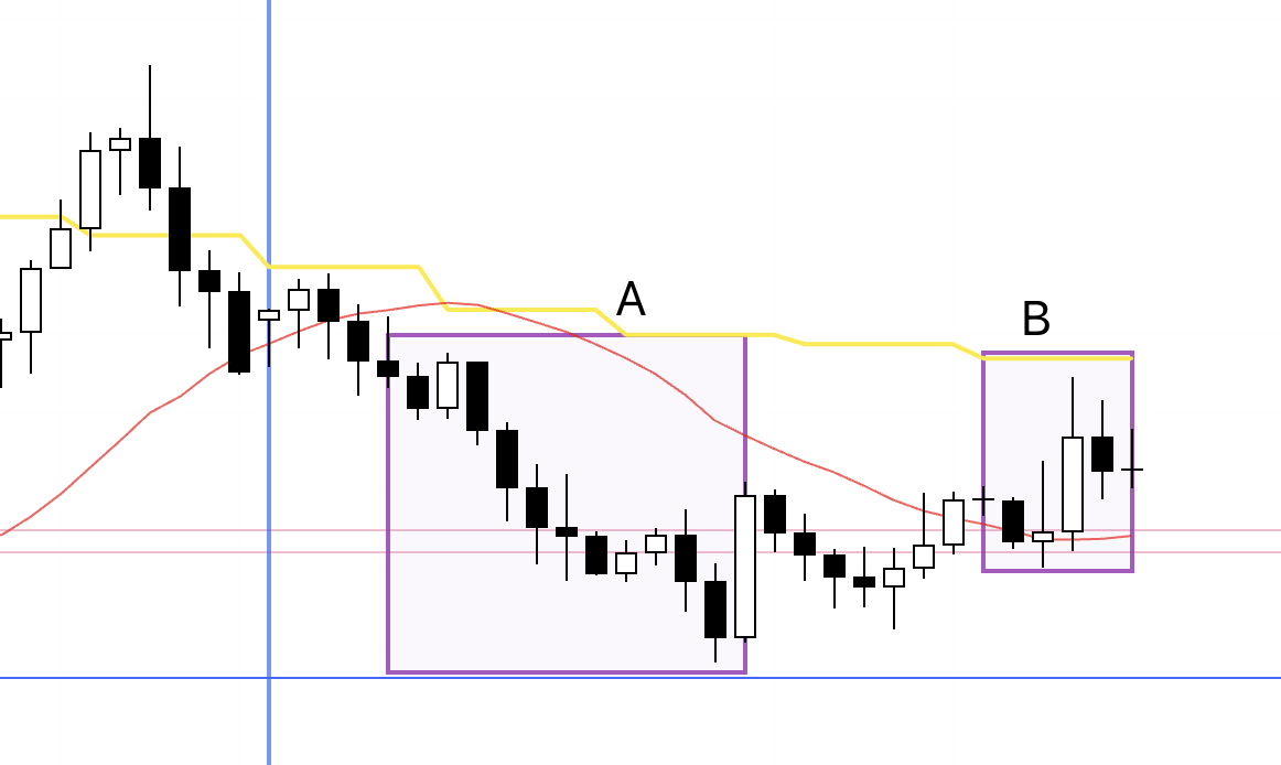 In practice I only traded A, and I skipped B because it overlapped with economic data releases, but the technicals were clean and matched the scenario I had mapped out in advance, so I’ll also explain B later.
