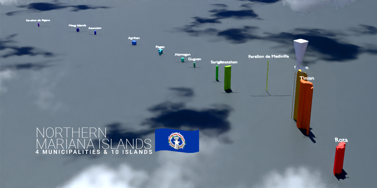 Northern Mariana Islands - 4 Municipalities & 10 Islands Map (3D + Pre-rendered Images)