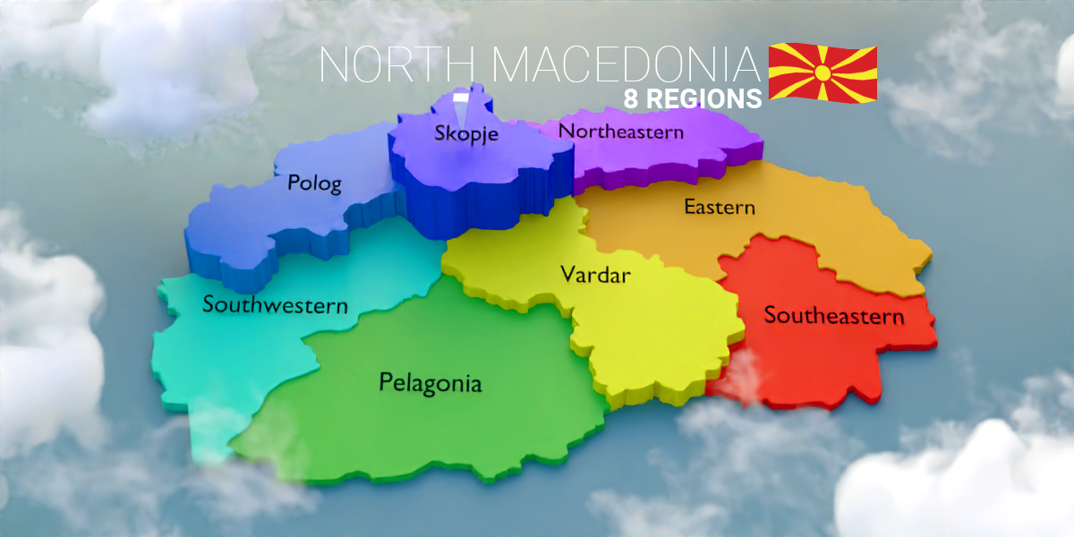 North Macedonia - 8 Regions Map (3D + Pre-rendered Images)