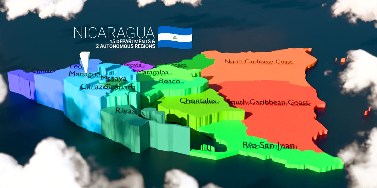 Nicaragua - 15 Departments & 2 Autonomous Regions Map (3D + Pre-rendered Images)