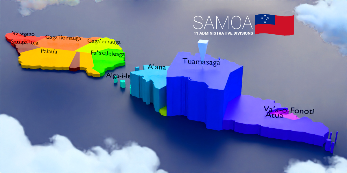 Samoa - 11 Administrative Divisions Map (3D + Pre-rendered Images)
