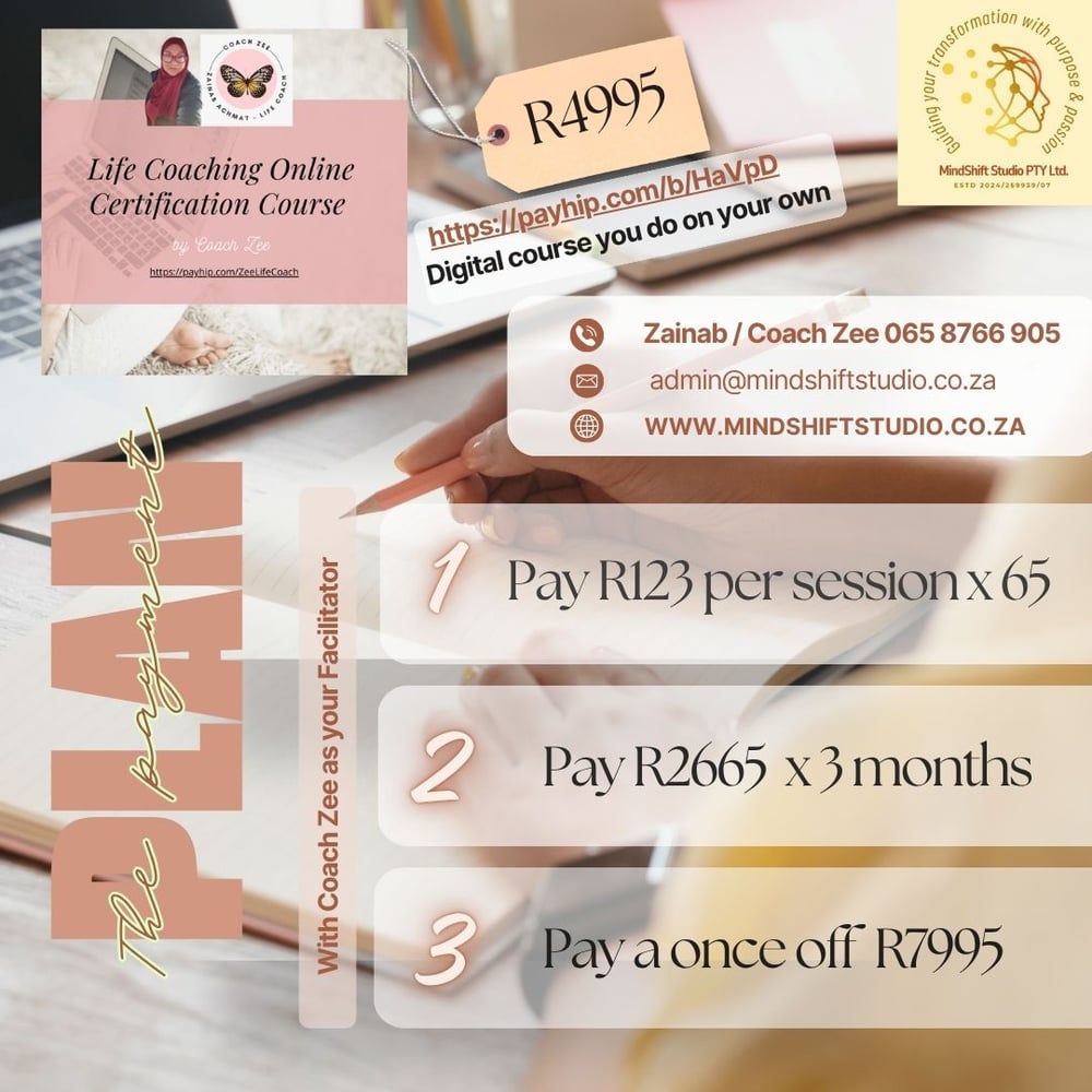 Visit my Payhip page: https://payhip.com/ZeeLifeCoach study at your own pace.