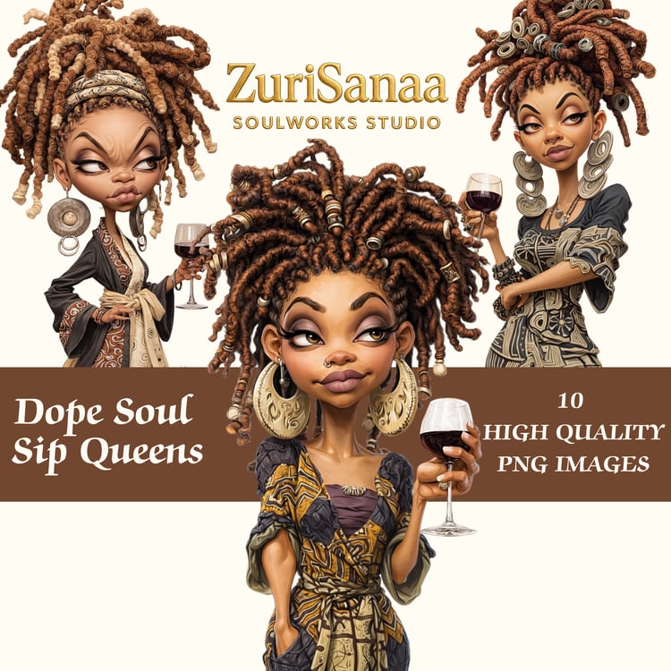 Afrocentric Queen Expressions – 10 PNG Digital Art Bundle