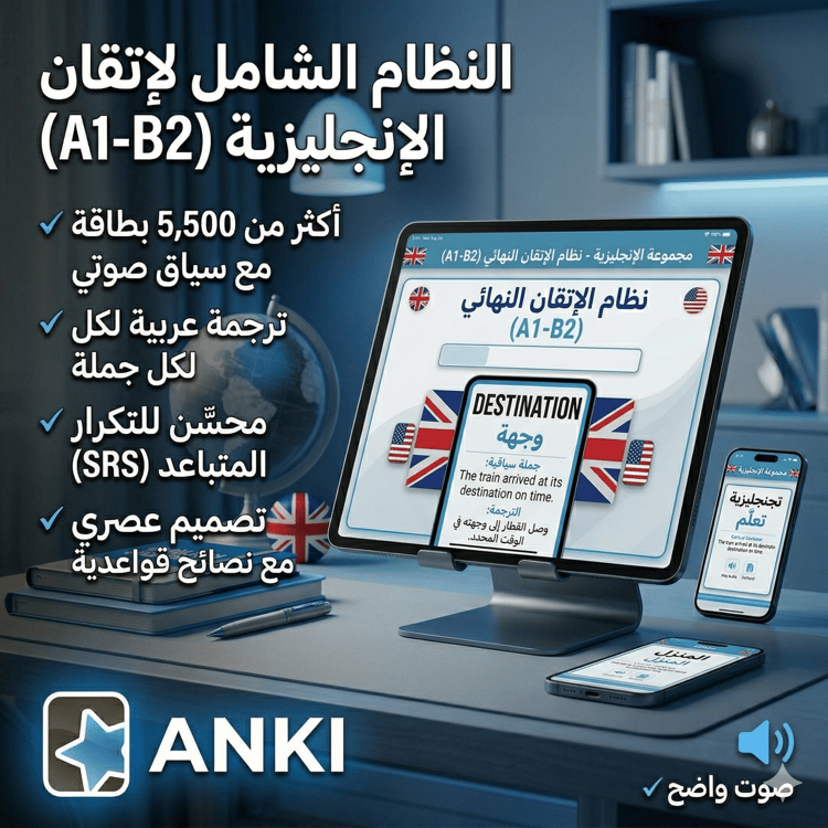 المنهج الشامل لإتقان الإنجليزية (A1-B2) – 5,500 بطاقة أنكي