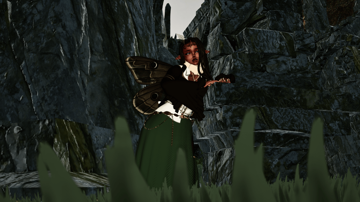 ✁‧‧‧ Physbones ⋮⋮ Hair, Body, Moth Wings & Antennae, Belt Chain, Long Skirt, Shaw Ribbon & Sleeves, Bookshelf Backpack, Earrings, Moth Flows, Custom Name Chain