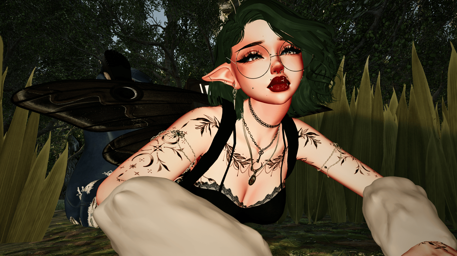 ✁‧‧‧ Toggles ⋮⋮ 2 Jackets, 4 Tops, 4 Bottoms, Tights, 3 Shoes, Glasses, Airpods, Earrings, Piercings, Choker, Key Necklace, Large Necklace, Arm Cuffs, Bracelets, Rings, Waist Beads, Chain Belt, Belly Ring, Leg Beads, Leg Warmers, Moth Antennae, Neck Fur, Arm Fur, Moth Wings, Wings Anim., Leg Fur, 3 Hairstyles, Hair Colors, Nail Length, Boobs & Booty Sliders, Lots of Material Swaps, Contacts, Glasses Falling, Expression Lock, Blink Anim., Oil Lamp, Moth Plushie, Moth Flows, Bookshelf Backpack, Polaroid Camera, The Booknook, Gogo Loco, & FaceTracking[OPTIONAL]