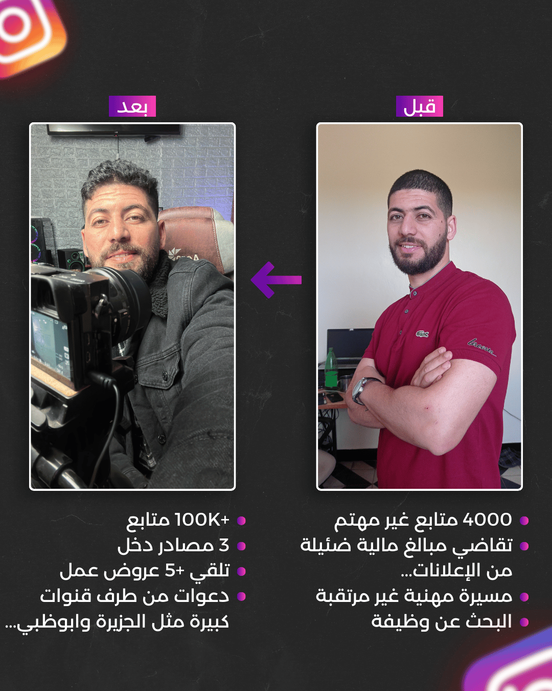 اسمي خليد عبد الاوي٬ متحصل على دبلومة جامعية في الاقتصاد والتسويق و دبلومة في الإدارة والأعمال٬ اعمل كمسوق سوشيال ميديا بخبرة 5+ سنوات٬ ساعدت عدداً كبيرًا من الصفحات (الشركات والأفراد الذين يتطلعون إلى تحسين وجودهم الرقمي في جميع انحاء العالم و من قطاعات مختلفة) على النمو بطريقة شرعية على انستقرام و تحقيق المزيد من المبيعات عن طريق استراتيجيات اسستها خلال سنوات عملي و استغلال