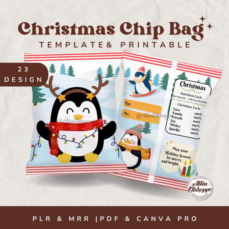 Chistmas Chip bag Template, Treat Bag, Editable in Canva Pro, Printable