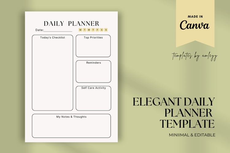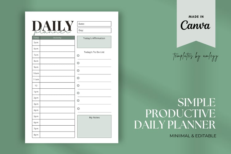Minimalist Daily Planner Template for Canva
