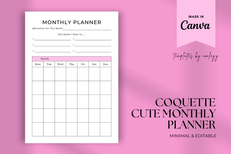 Coquette Monthly Planner Template