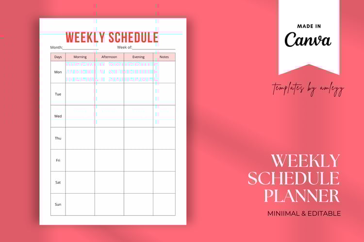 Minimal Weekly Schedule | Simple Weekly Planner Template