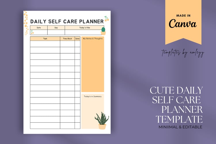 Cute Daily Planner Template – Canva Editable, Aesthetic Printable