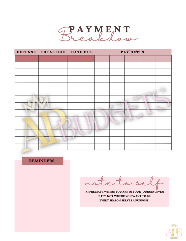 PAYCHECK BUDGET BREAKDOWN