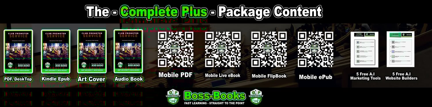 Club Promoter Business - Complete Plus - With AudioBook / Mobile QR Code's / 5 Free A.I Marketing Tools / 5 Free Website Builders & More