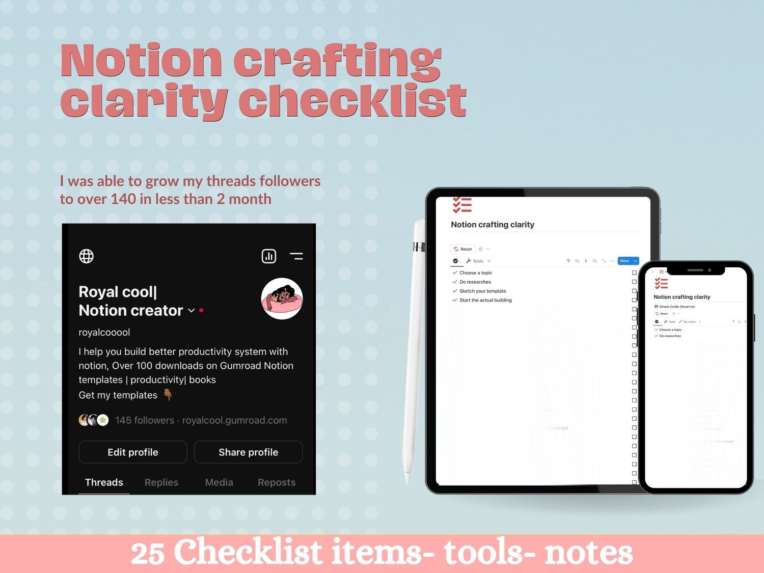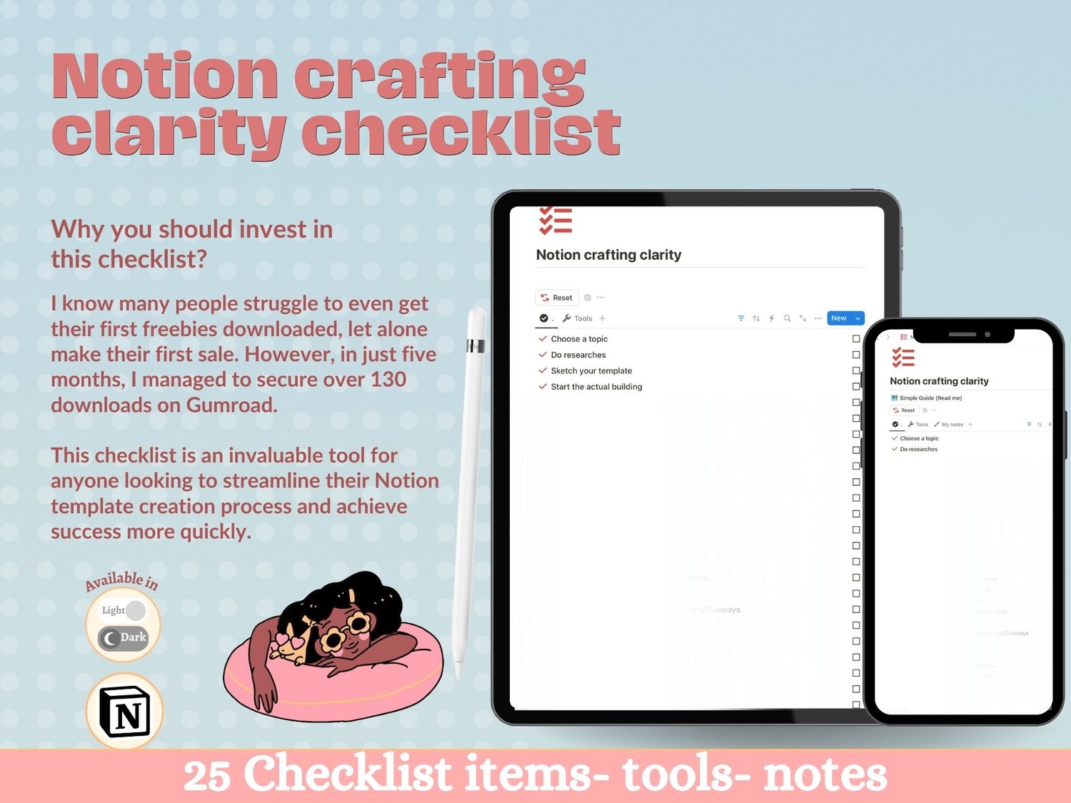 The "Notion Crafting Clarity" is a checklist I created specifically for individuals looking to enhance their Notion templates.