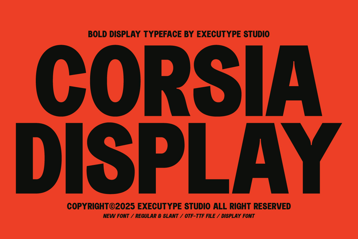 Corsia Display Font the perfect bold and narrow font for headlines and captivating displays. Ideal for designers seeking a modern and impactful look with retro and vintage vibes. Transform your projects with this regular and slant, condensed typeface that demands attention.