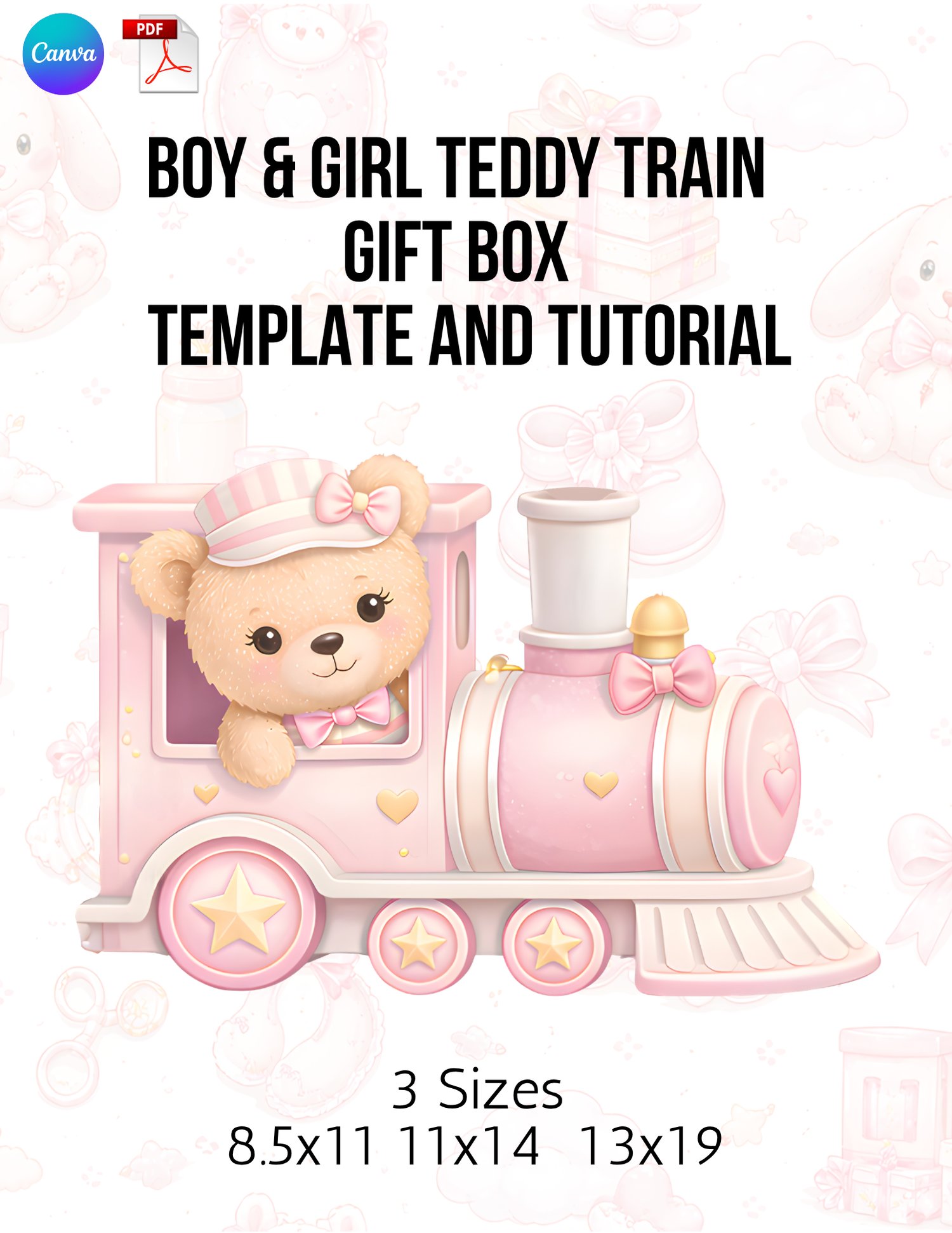 Teddy Bear Train Gift Box Template Bundle