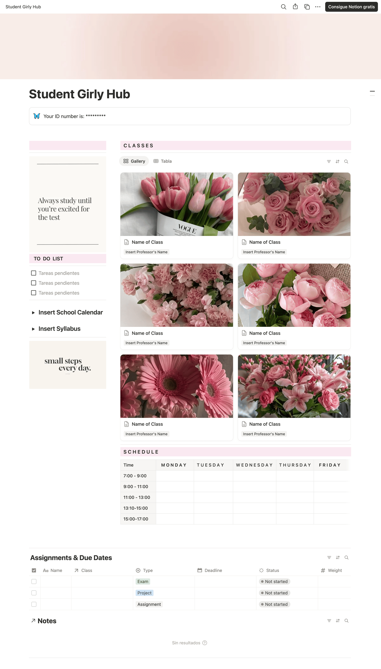 Student Girly Hub | An Aesthetic & Functional Notion Workspace for Students