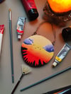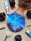 Al darle la vuelta, aparece un precioso atardecer con nubes suaves y pájaros de fondo, aportando luz, calidez y una sensación de libertad. El contraste entre ambas caras la convierte en una pieza muy especial y versátil.