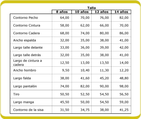 Verifica las medidas de cada talla en el cuadro adjunto.