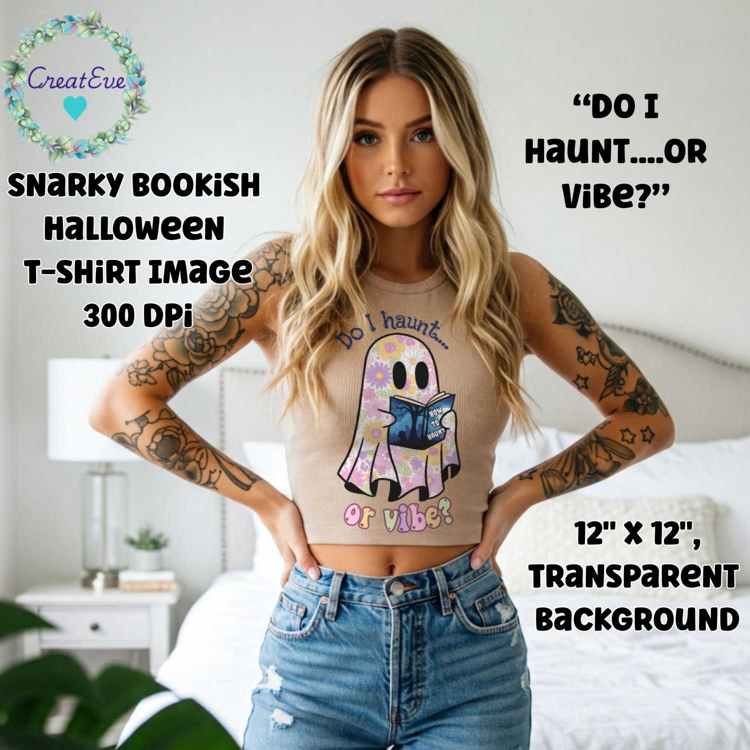 Bookish Retro Daisies Ghost Reading a Haunting Manual T-shirt Image PNG