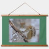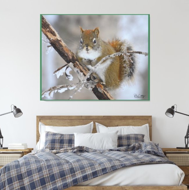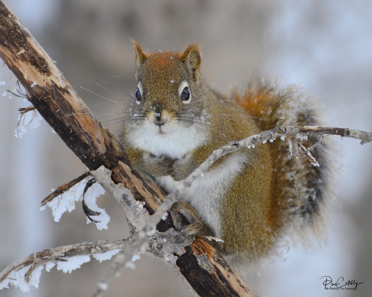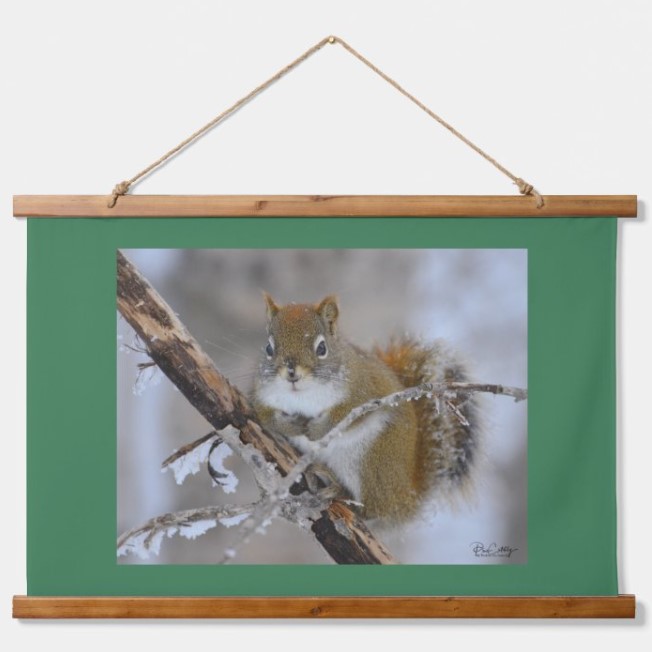 Katie waiting. Katie is an American Red Squirrel and was born in the spring of 2024. She is a very active member of the Mr. Bickles family! Here she is in 2024 waiting for her supper.