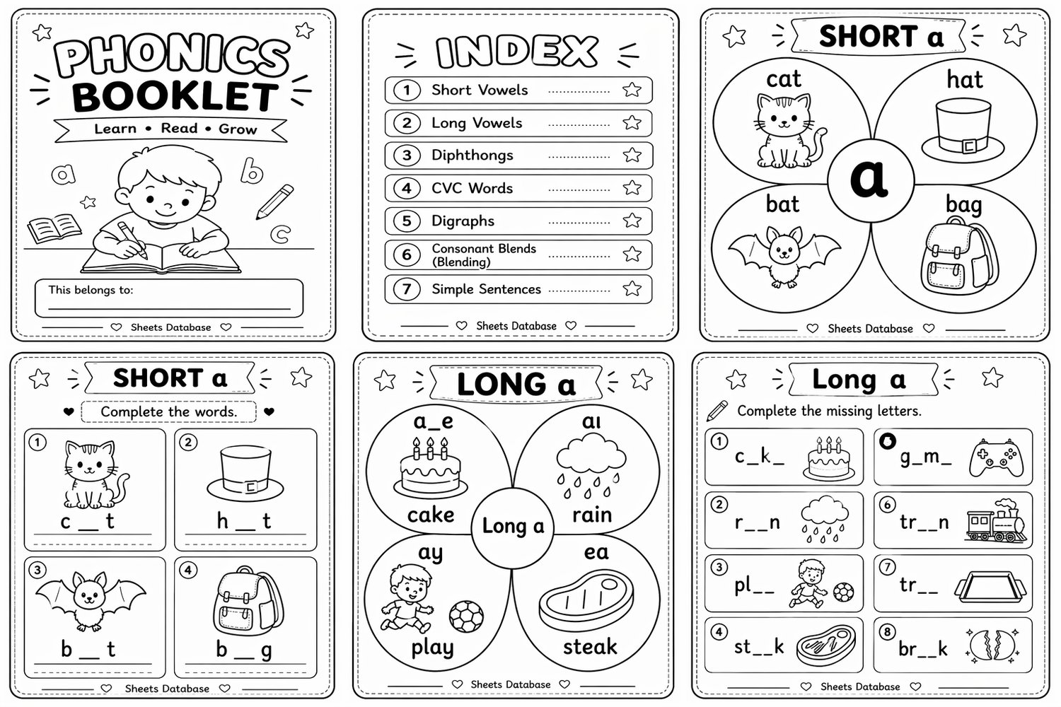 A well-organized phonics booklet designed to help young learners build strong reading and writing skills step by step through clear patterns, simple activities, and engaging visuals.