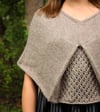 This capelet is worked in the round from the bottom up, with a simple honeycomb lace pattern hiding behind front pleats and repeated at the back. Basic stockinette and garter stitch let the pleats take center stage in a cozy accessory that will stay put around your shoulders when fall’s chill arrives.