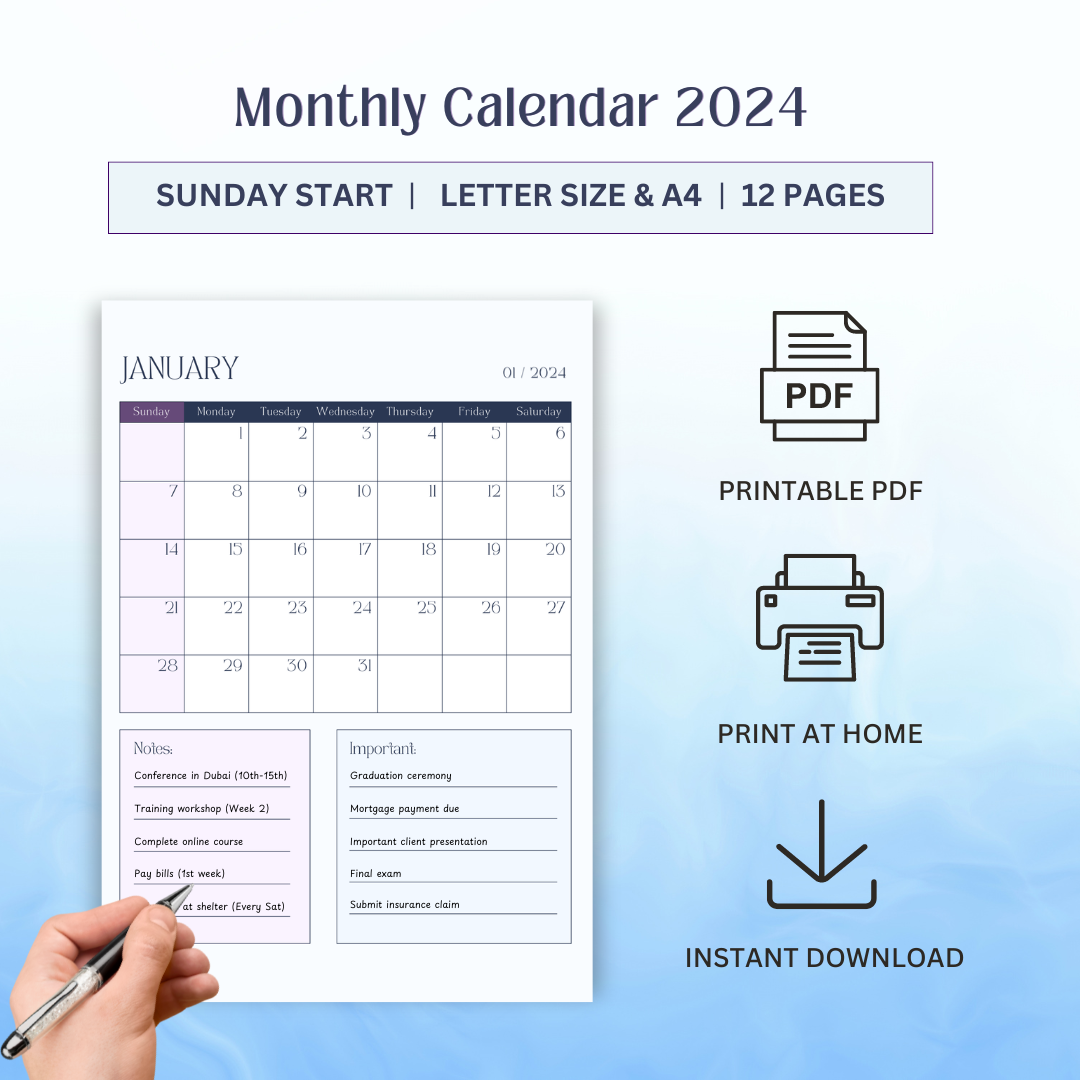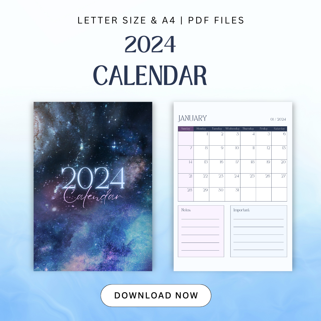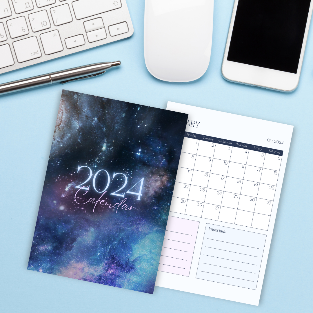 Transform your daily planning into a journey through the cosmos. Download and print your 2024 Sky-Themed Calendar today!