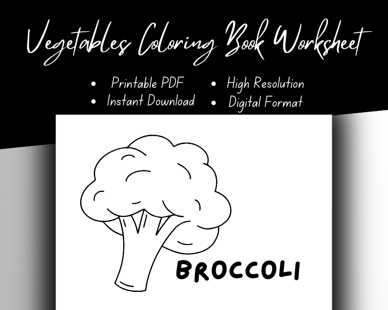 Vegetables Coloring Book Worksheet | Instant Download | High Resolution | Digital Format