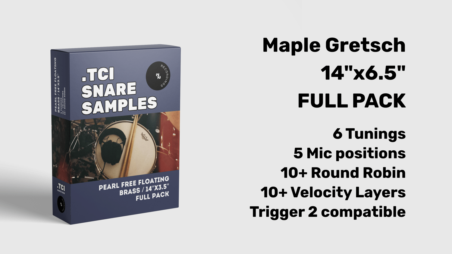 Maple Gretsch 14"x6.5" Snare - Full Pack - Trigger 2 Sample Pack and .wav files