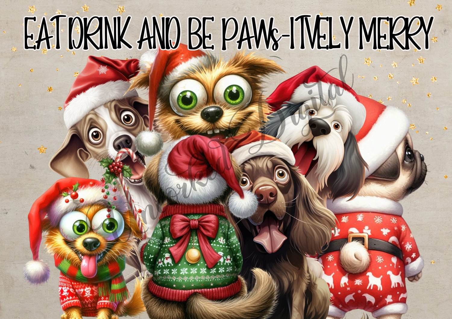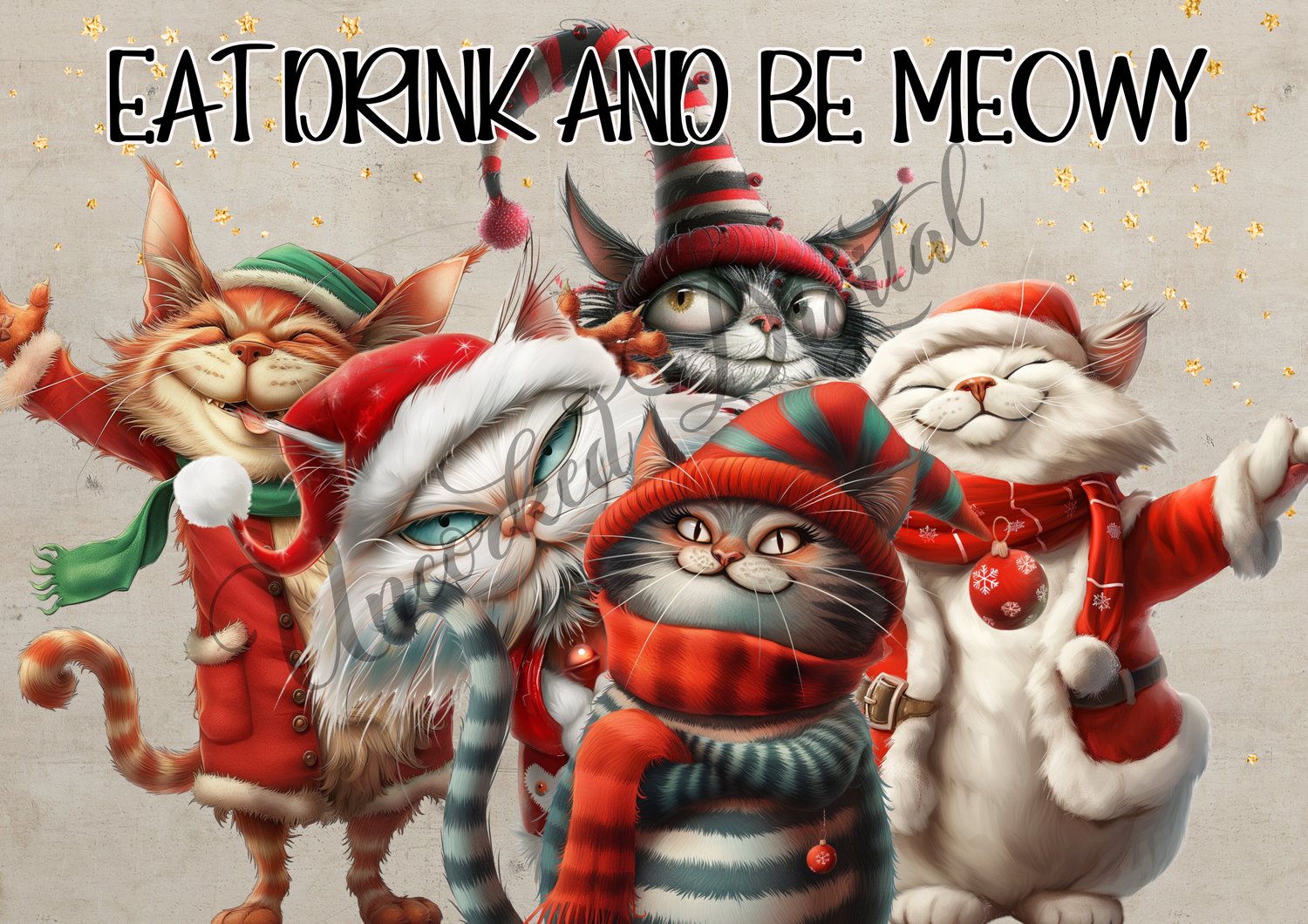 Eat Drink and be Meowy Cat design and Eat Drink and Paws-itively merry dog designs.
