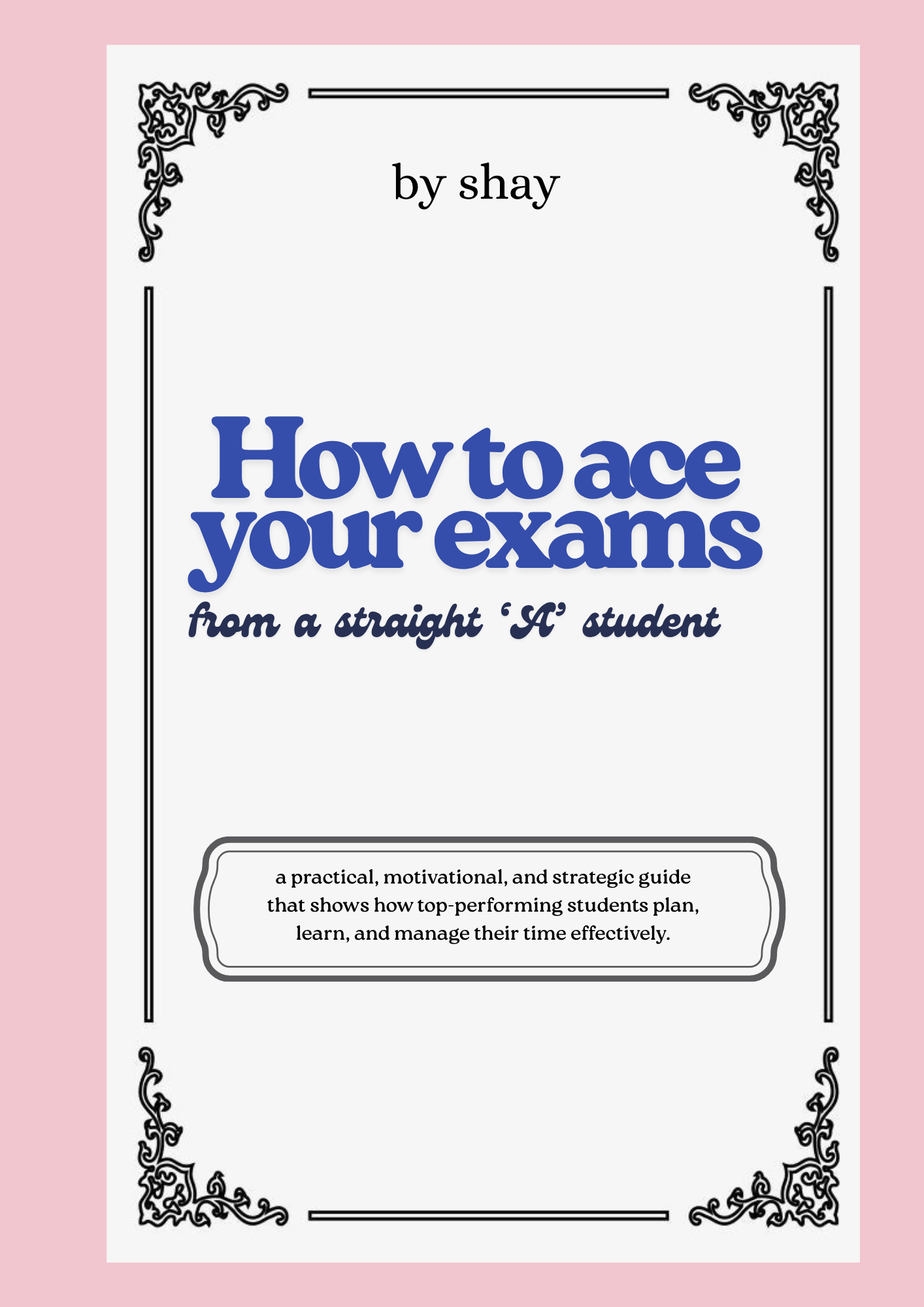 Tired of endless study hours with little progress? How to Ace Your Exams is your ultimate guide to studying smarter, not harder. Written by Shay - a straight-A student who’s been through the stress, burnout, and last-minute cramming. This ebook breaks down the exact strategies that turn average grades into top scores.