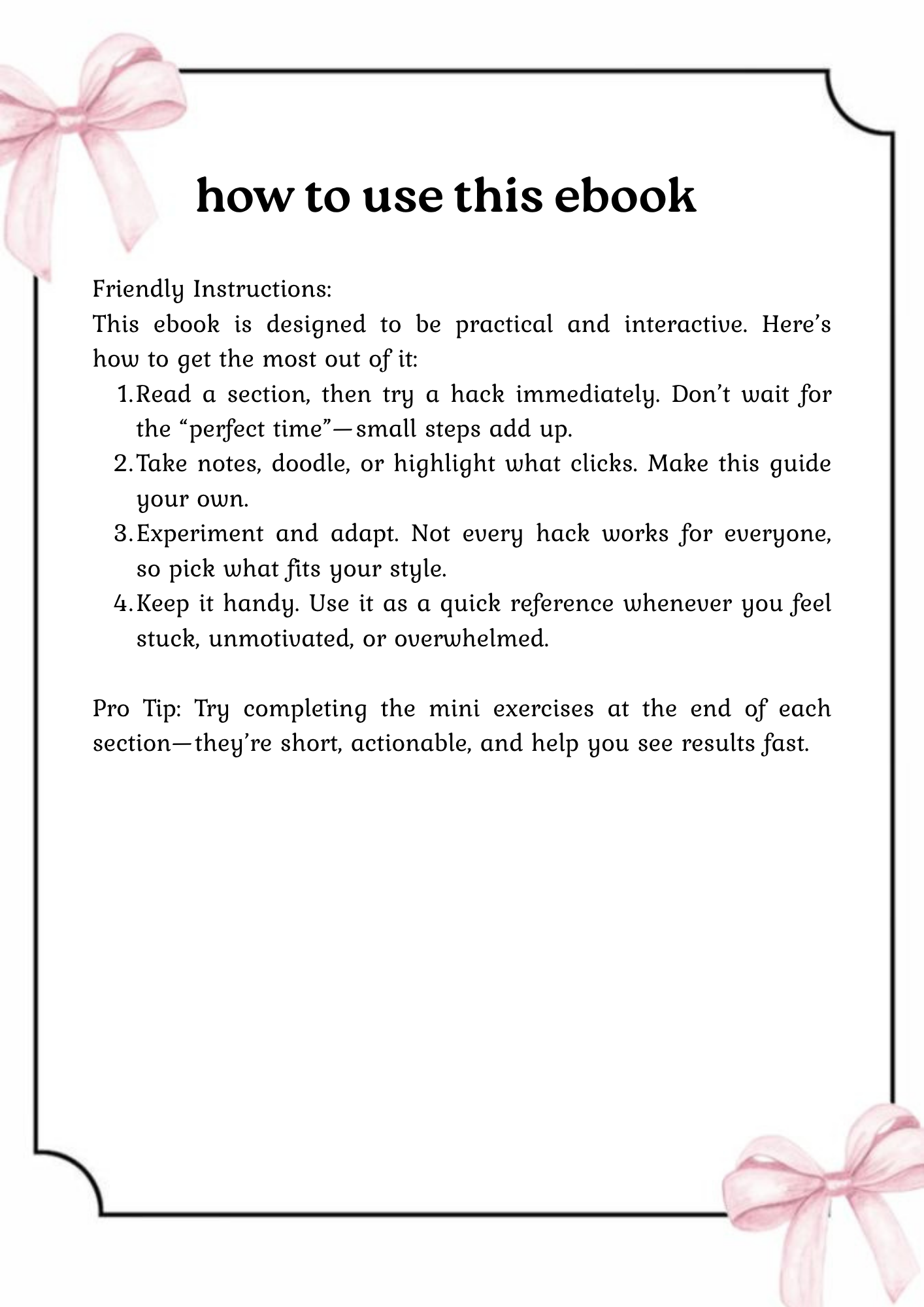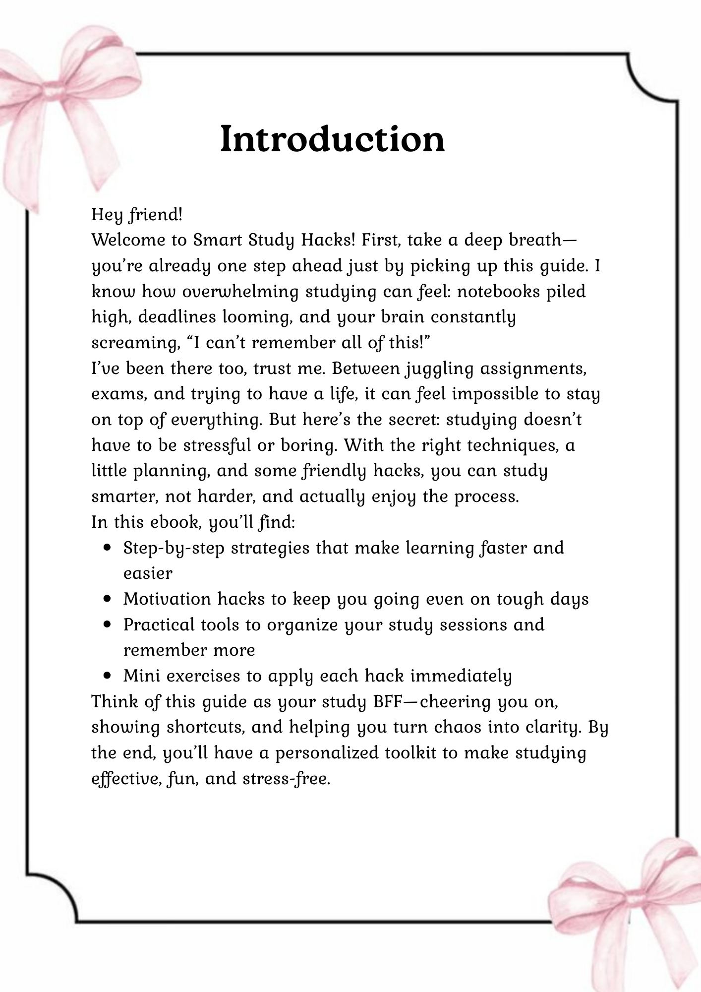 Designed in a clean, pastel aesthetic, this ebook is your go-to study companion, simple, relatable, and packed with real results. Whether you’re preparing for board exams, college tests, or professional papers, this guide will help you feel calm, confident, and fully in control.
