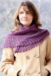 Yarn: Sock yarn shawl: Madelinetosh tosh merino light (100% merino wool, 440 yards/100g); 1 skein, shown in Denim. DK shawlette: Malabrigo Yarn Silky Merino (50% merino wool, 50% silk; 150 yards/100g); 1 skein, shown in Cape Cod Grey. DK shawl: Malabrigo Yarn Silky Merino (50% merino wool, 50% silk; 150 yards/100g); 2 skeins, shown in Plum Blossom.