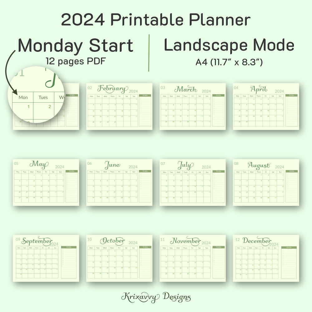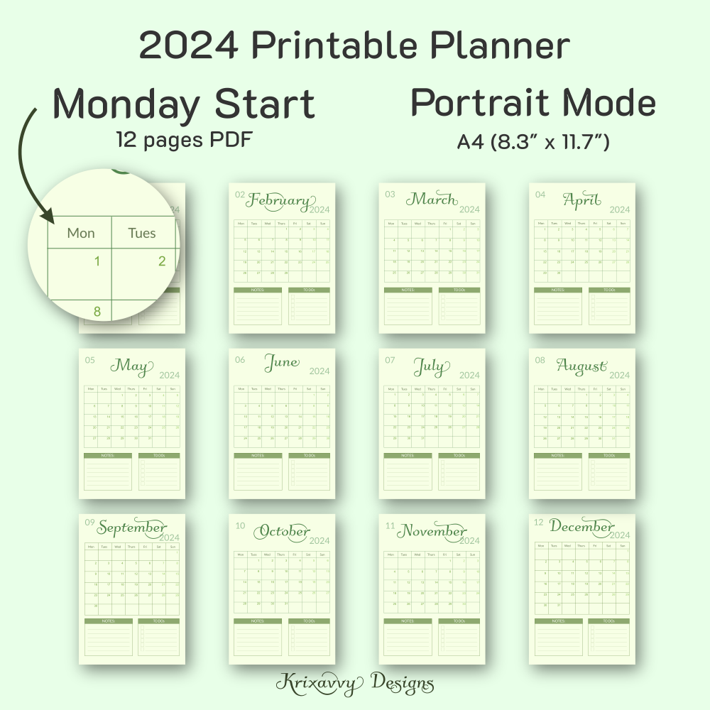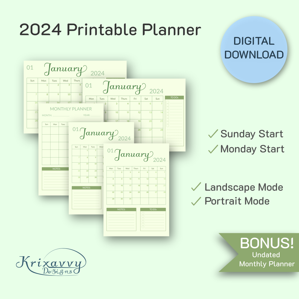Get ready planning year 2024 with this Dated (and Undated) Monthly Printable Planner. The simple, straight-forward, cool in the eyes design will help you organize the days ahead.