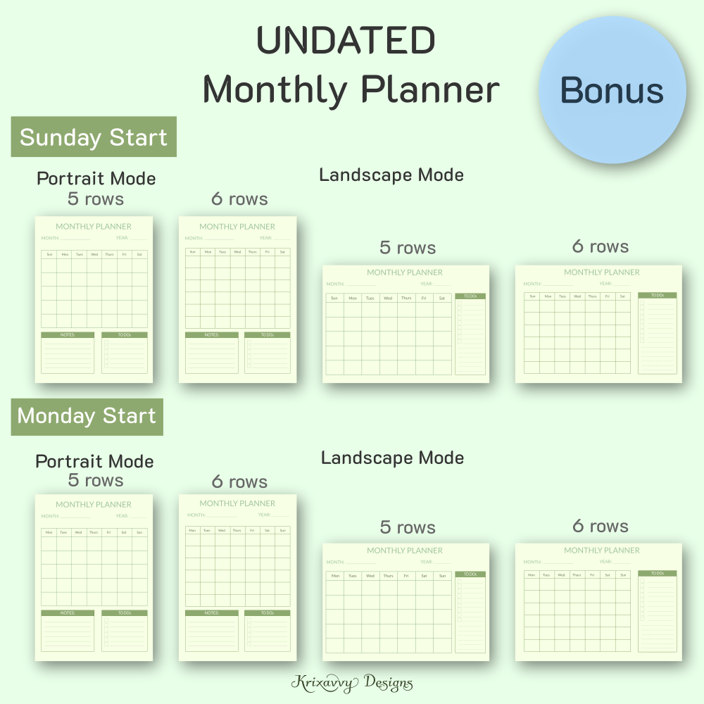 - If you need the Undated version, download the ZIP folder.