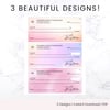 - 3 PDF files containing 3 checks on each page (9 unique designs)